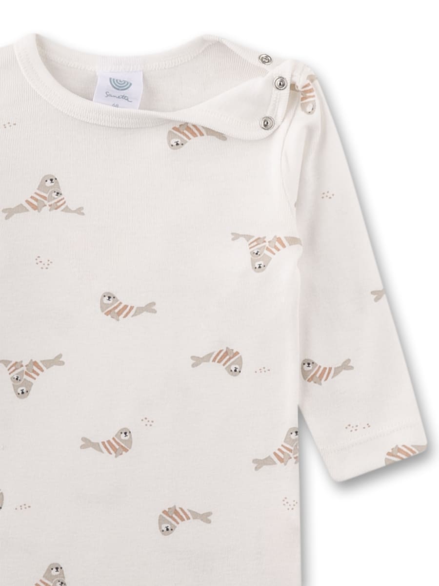 Боді Small Fish — чарівна модель із милим морським принтом, що створює відчуття затишку та турботи у щоденному гардеробі малюка. Виріб виготовлений з органічної бавовни, яка відзначається природною м’якістю, добре пропускає повітря та делікатно контактує з чутливою шкірою дитини. Зручний крій із довгими рукавами забезпечує комфорт протягом дня, кнопки в нижній частині дозволяють легко та швидко переодягати малюка. Акуратний принт із маленькими морськими тваринами додає виробу настрою та робить його чудовим елементом щоденного дитячого гардероба. Матеріал сертифікований незалежними європейськими інститутами Organic Cotton, безпечний до здоров'я малюка, вільний від шкідливих сполучень.