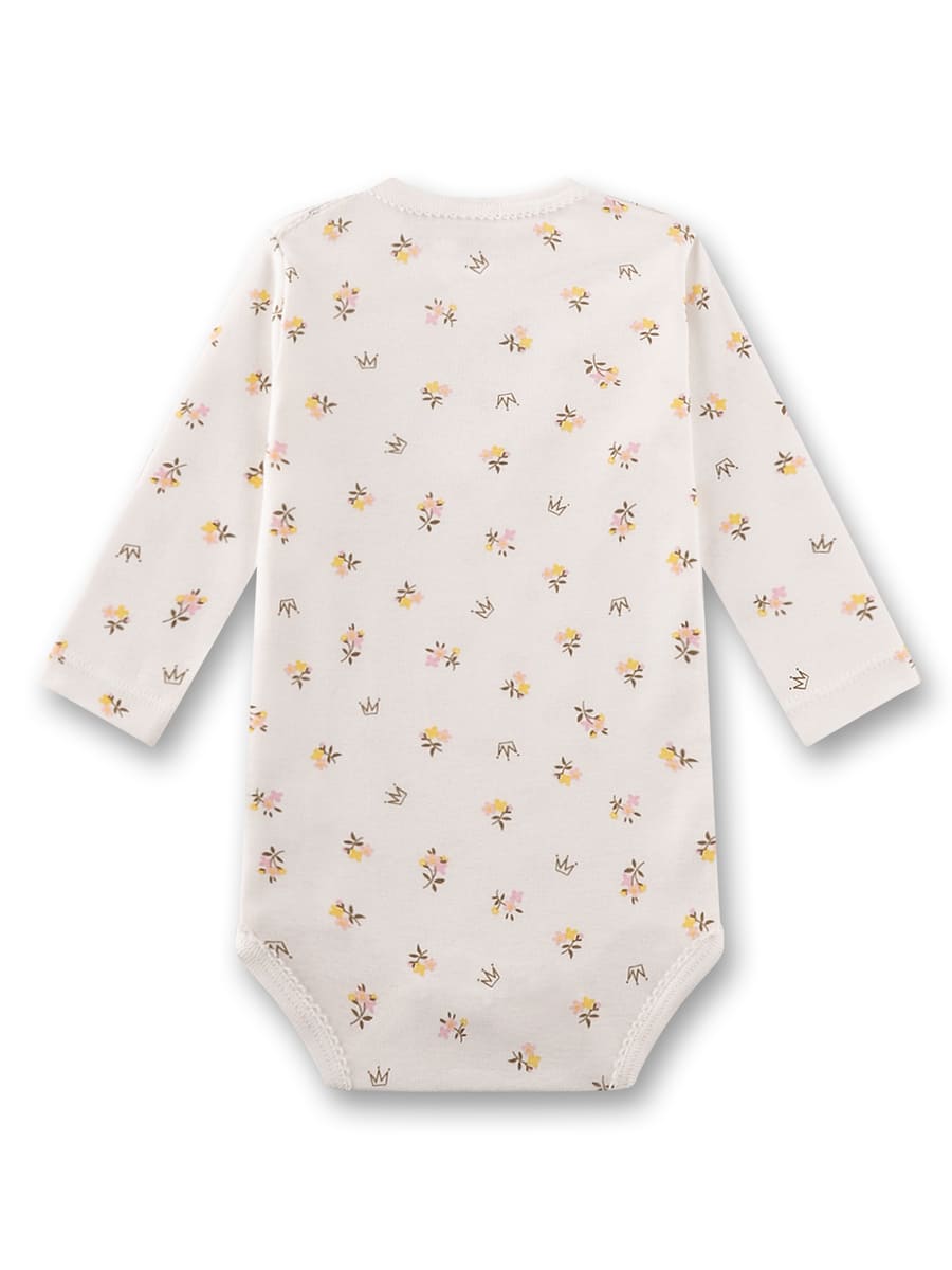 Витончений принт із мініатюрними букетами квітів та делікатними коронами надає моделі особливого шарму, створює ніжний образ у стилі витонченої дитячої класики. Довгі рукави додають затишку, продуманий крій дарує свободу рухів. Зручні кнопки у нижній частині полегшують перевдягання малюка. Акуратна окантовка та маленький бантик біля горловини підкреслюють делікатність дизайну. Матеріал сертифікований незалежними європейськими інститутами Organic Cotton, безпечний до здоров'я малюка, вільний від шкідливих сполучень.