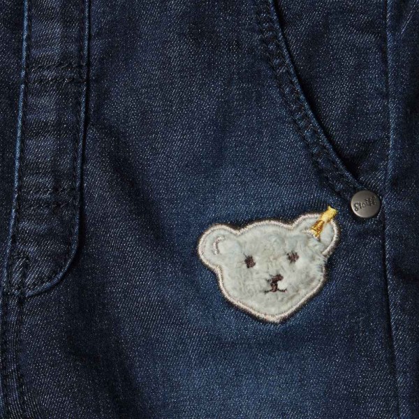 Широкий еластичний пояс забезпечує надійну посадку і не здавлює животик, а м'які манжети роблять модель зручною для активних малюків. Чарівна аплікація з ведмедиком Steiff надає джинсам особливого стилю і впізнаваного дизайну.