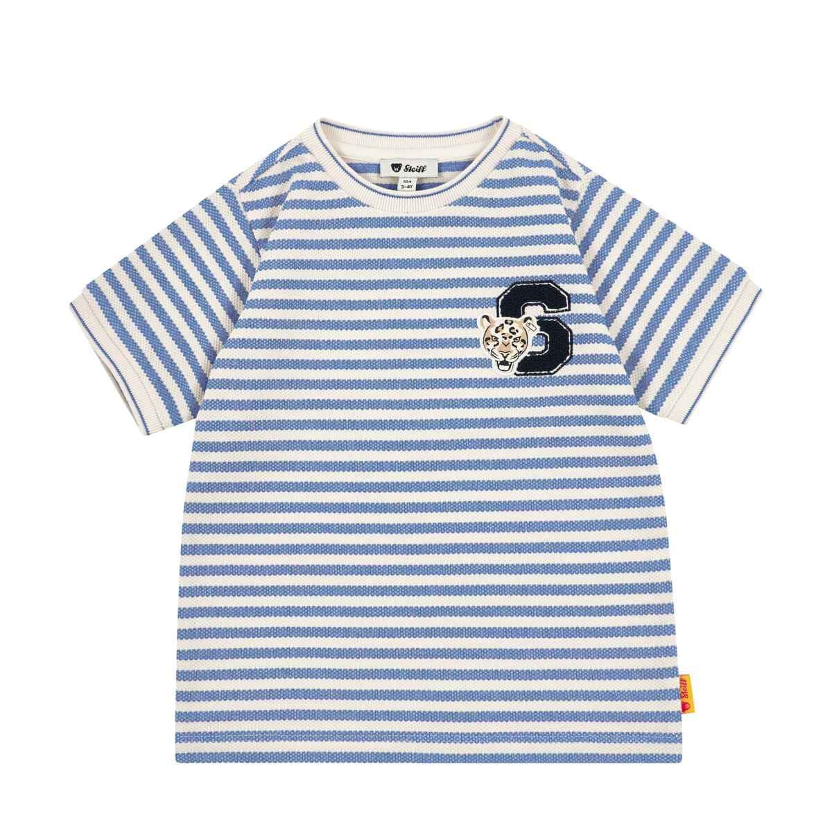 Футболка Leo Club вирізняється стильним дизайном і комфортом - ідеальне поєднання для активних днів. Натуральна бавовна дарує м’якість, легкість і приємні відчуття до шкіри, забезпечуючи оптимальну повітропроникність. Смугастий принт у насичених відтінках створює динамічний образ, аплікація з літерою додає виразного характеру та оригінальності. Круглий виріз із контрастною окантовкою акуратно тримає форму і забезпечує зручну посадку. Легка структура тканини дозволяє вільно рухатися, роблячи модель ідеальною для щоденних пригод. Фірмовий ведмедик завершує дизайн впізнаваним акцентом.