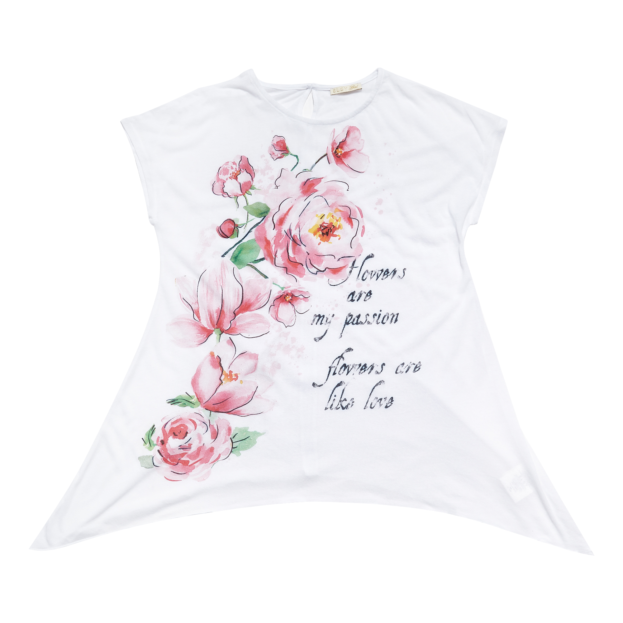 Футболка Giorgia — вишукана модель, створена у художній манері та натхненна світом квітів. Акварельний флористичний принт виглядає немов авторський живопис, надаючи образу легкості, ніжності та емоційної глибини. Вільний, м’яко розкльошений силует красиво рухається під час ходи, створюючи відчуття повітряності. Завдяки продуманому поєднанню матеріалів модель приємна в носінні та зберігає охайний вигляд протягом дня. Дизайн і виконання підкреслюють преміальний характер бренду та увагу до кожної деталі.