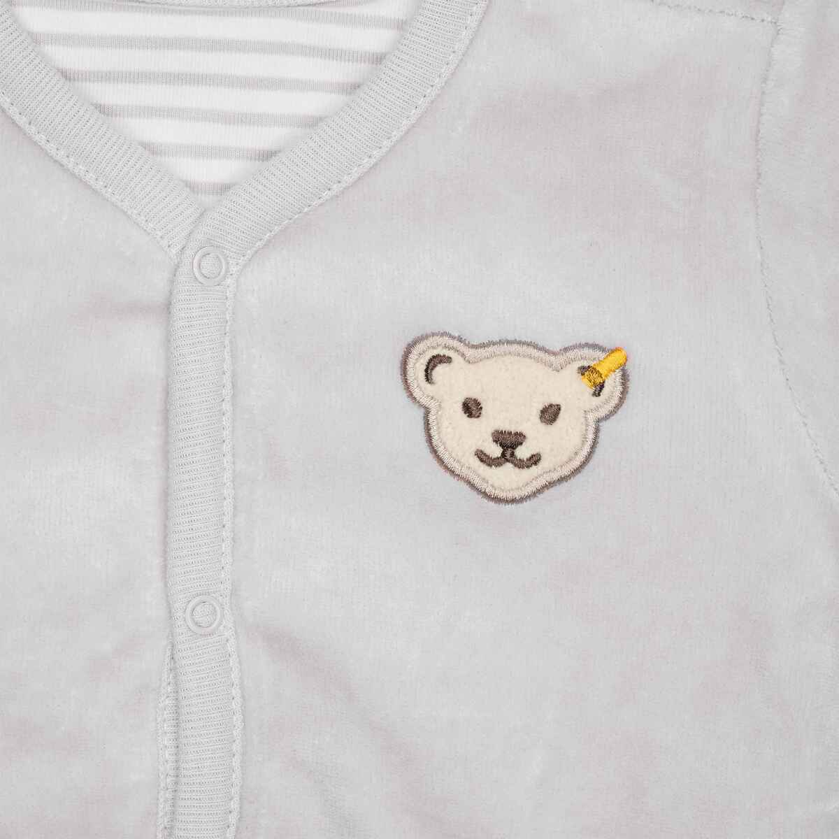 Двостороння кофта Basic з органічного велюру — чудовий виріб 2 в 1, адже він не лише екологічний, але й неймовірно стильний. Одна сторона — однотонна, інша — в смужку ніжного кольору. Оксамитово-м’який матеріал приємно зігріває та забезпечує комфортні відчуття під час носіння. Застібки на кнопки дозволяють легко одягати та знімати виріб. Вільний крій не викликає дискомфорту.