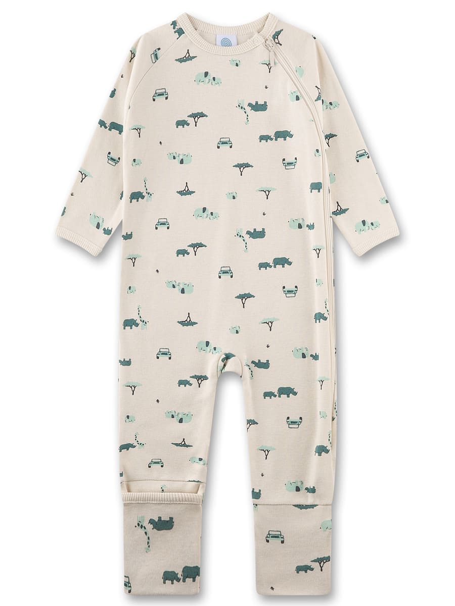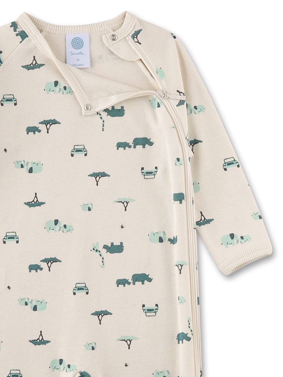 Комбінезон Green Tree — ніжний трикотажний комбінезон для малюків із милим сафарі-принтом, що дарує природний комфорт із перших днів життя. Модель виготовлена з органічної бавовни, сертифікованої за стандартом GOTS: тканина м’яка, дихаюча та делікатна до чутливої дитячої шкіри. Чарівний принт із маленькими тваринами й деревами створює грайливий настрій. Зручна бокова блискавка полегшує переодягання та нічну зміну підгузка, додаткова кнопка біля горловини забезпечує комфортну посадку без тиску. Практична деталь — ніжки з підворотами, які можна залишити відкритими або закрити для додаткового тепла.