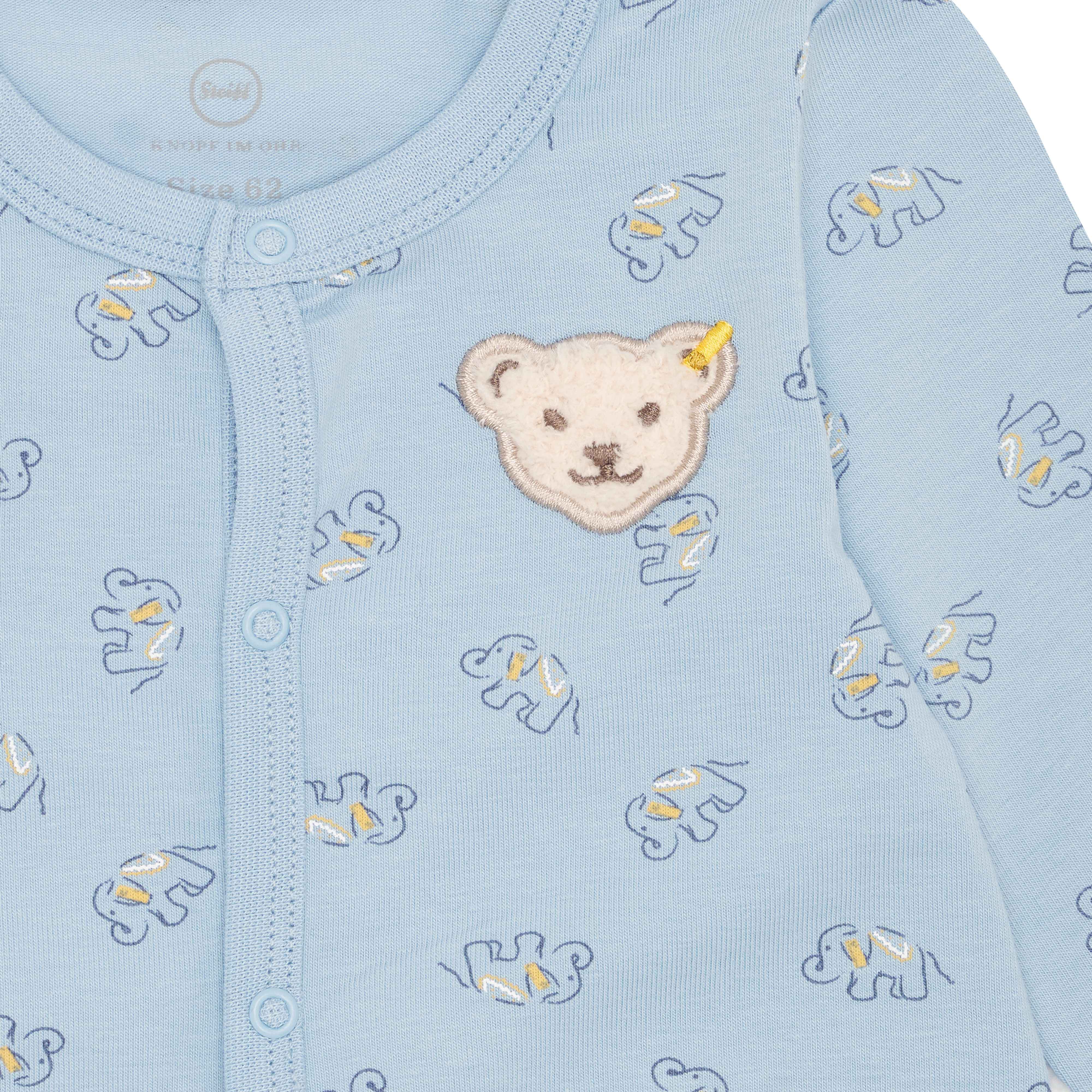 Милий, елегантний комбінезон Elephant Ride створений з органічної сертифікованої бавовни. Тканина безпечна для немовляти і приємна на дотик. Не викликає подразнень на ніжній шкірі. Вільний крій і м'який трикотаж ідеально підходять для ігор і відпочинку. Застібки-кнопки спереду і на ніжках полегшують одягання. Пухнастий ведмедик Steiff Teddy ідеально вписується в загальний дизайн і надає виробу особливої чарівності.