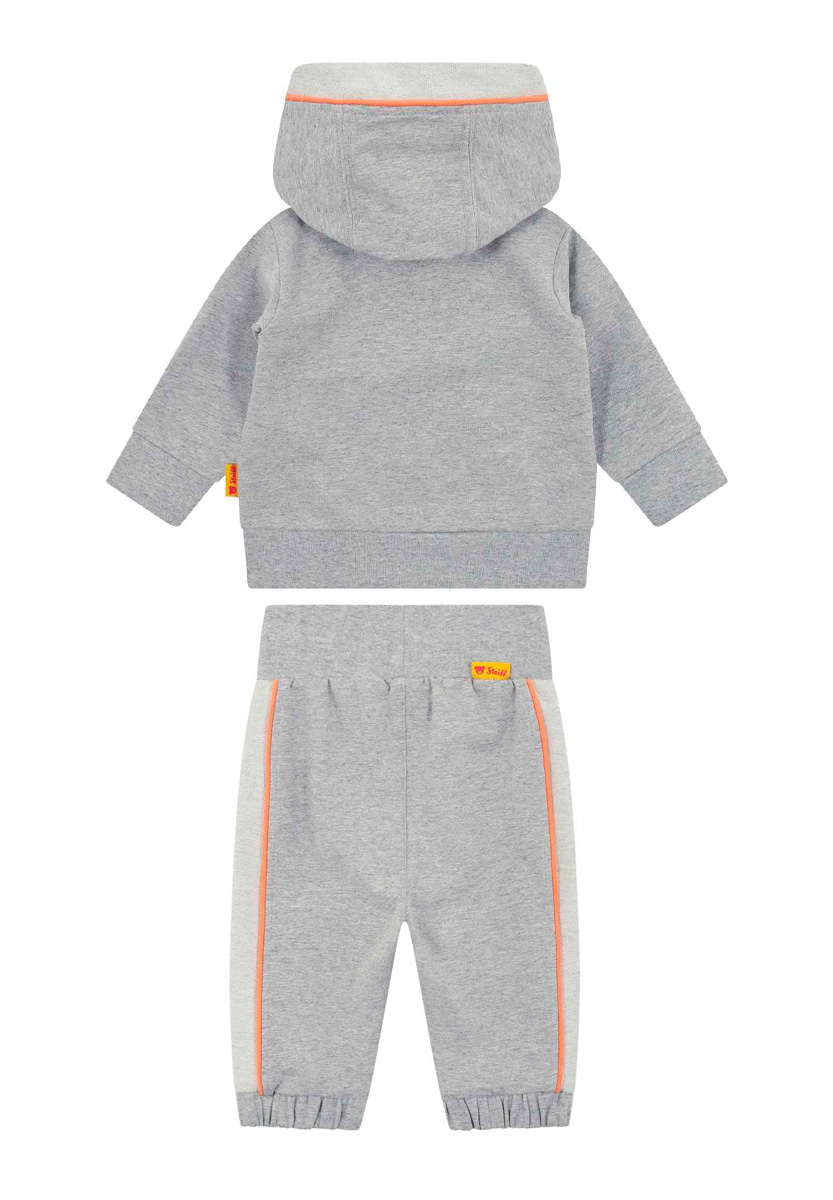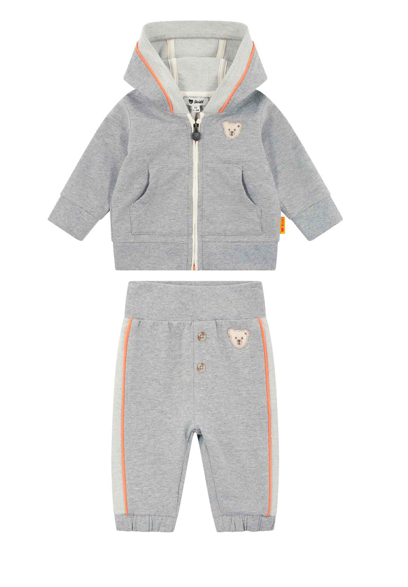 Затишний костюм Sundancer із сертифікованого бавовняного матеріалу, який безпечний для дитини, має дихаючі властивості та не викликає парникового ефекту. Вільний крій гарантує зручність під час носіння. Капюшон і кишеня-кенгуру на кофті надають виробу додатковий комфорт. Стильна контрастна смуга по краю капюшона та еластична обробка на манжетах і подолі - модні акценти виробу. Застібка-блискавка з чарівною деталлю у вигляді ведмедика Тедді гарантує комфортне переодягання. Пухнастий ведмедик Steiff Teddy завершує дизайн виробу