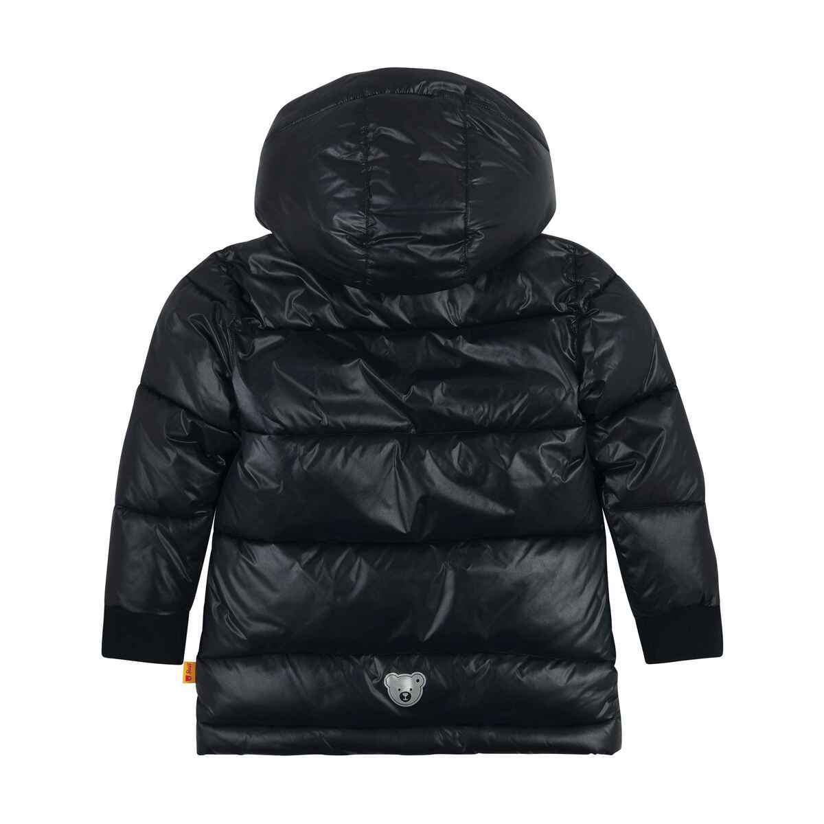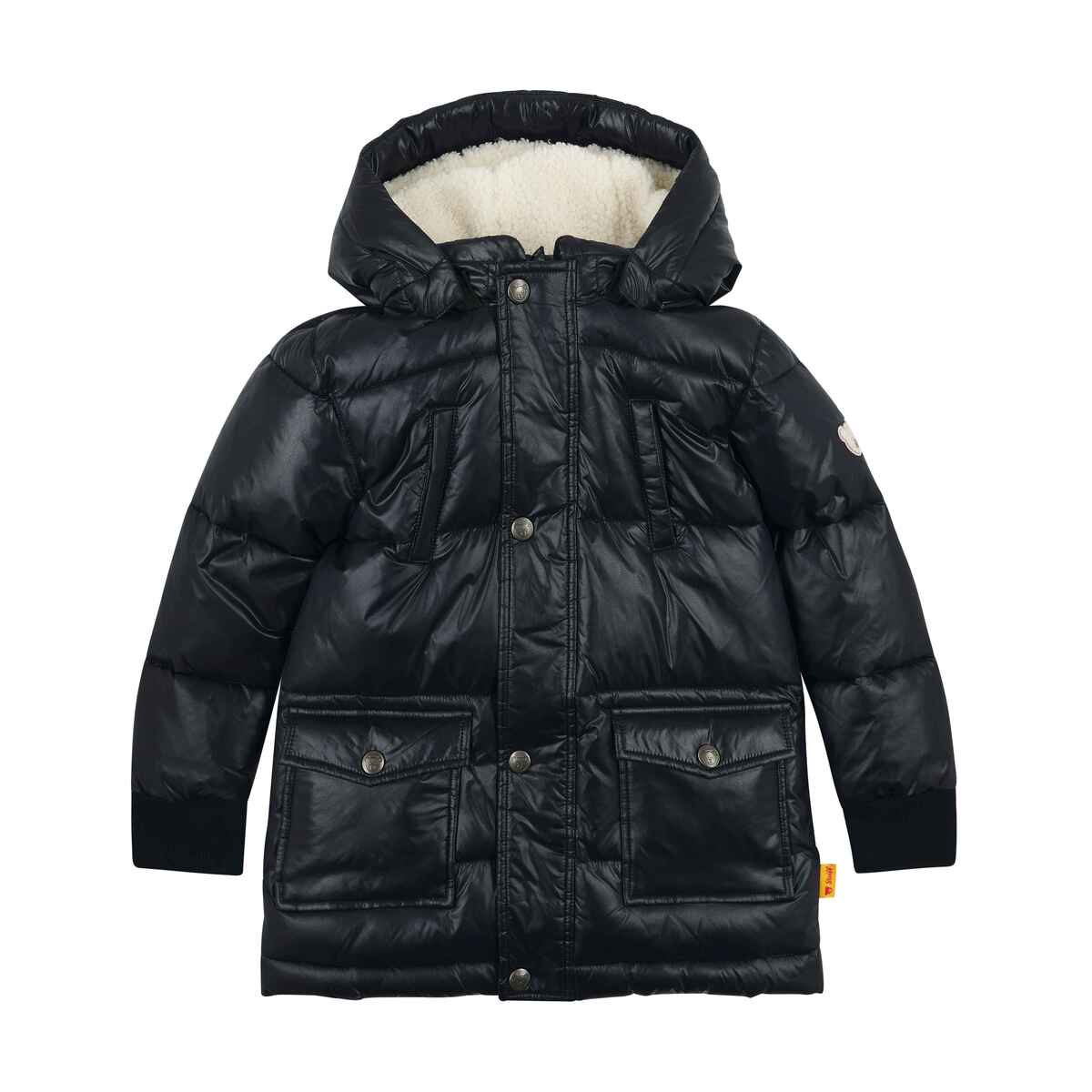 Знімний капюшон, високий комір і м’які трикотажні манжети надійно захищають від вітру. Є зручні кишені. На рукаві — фірмовий ведмедик Steiff, що додає образу впізнаваного шарму. Затишна, практична та стильна куртка для активних прогулянок узимку.