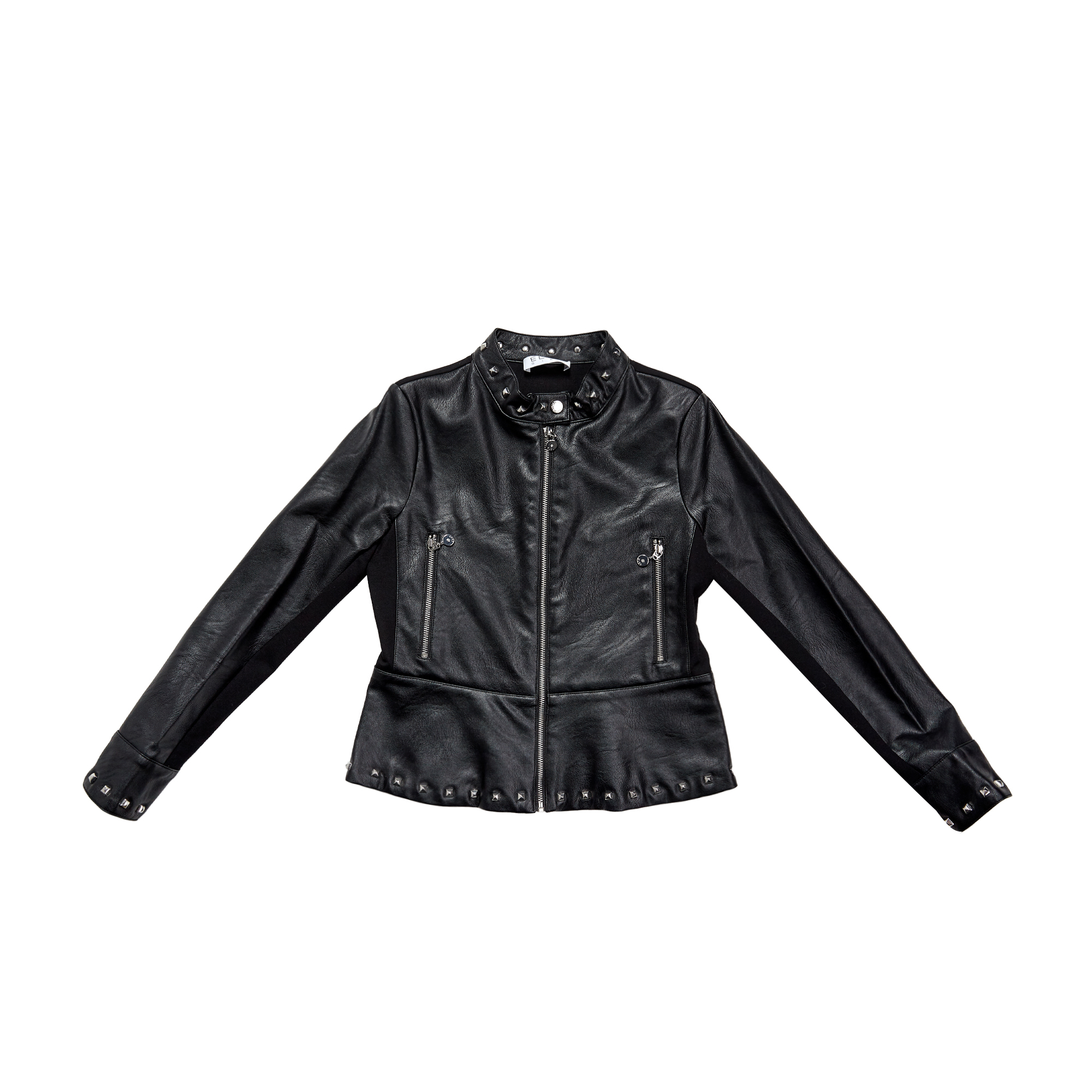 Куртка German — стильна модель для дівчаток, створена у сучасній інтерпретації класичної “косухи”. Комбінація матеріалів додає образу виразності: гладкі “шкіряні” вставки поєднані з м’якою тканиною, що створює комфорт і трендовий вигляд одночасно. Декоративні заклепки на комірі, манжетах і по низу виробу підкреслюють характерний рок-шик стиль бренду. Це універсальна куртка для модних образів — від повсякденних до більш урочистих.