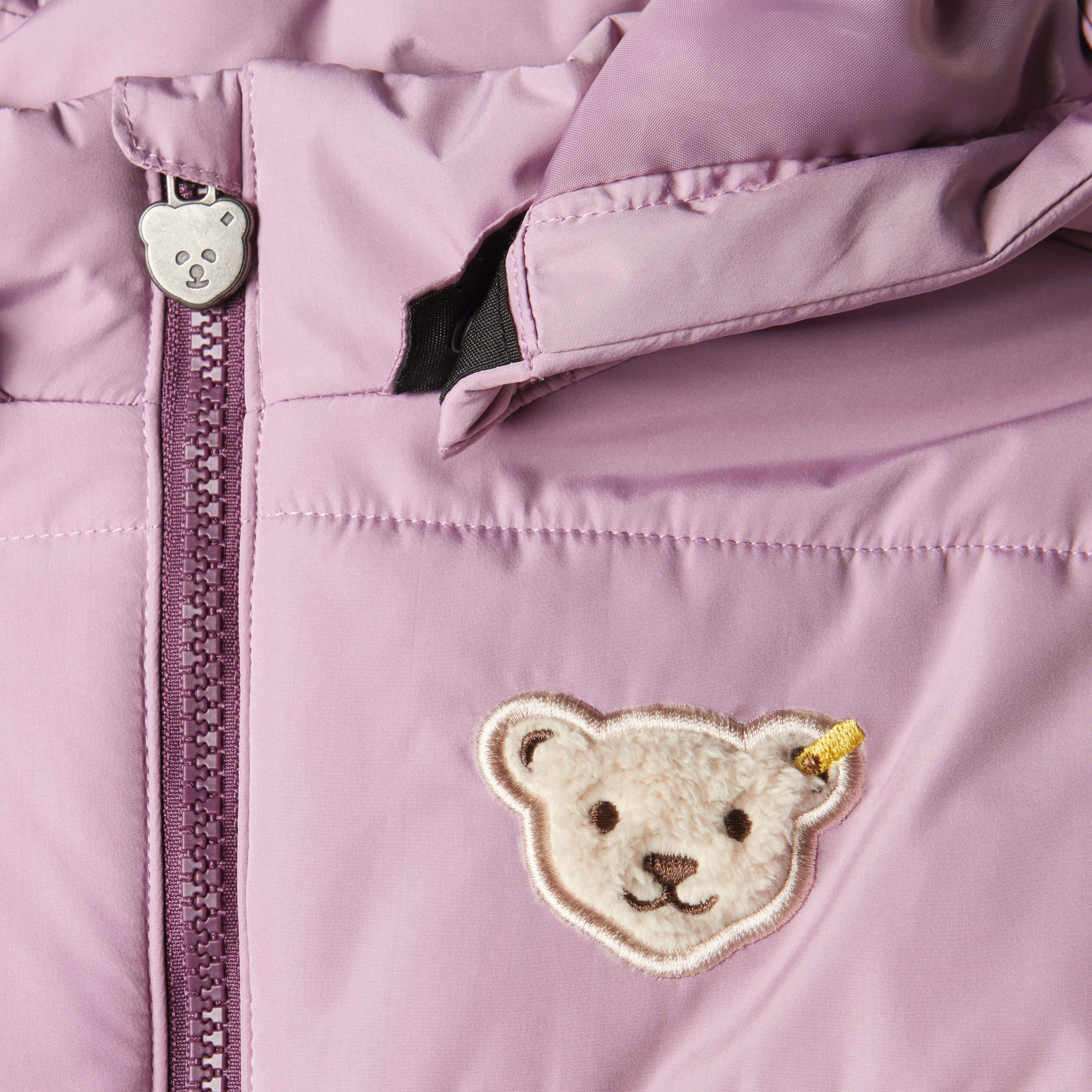 Стильна куртка Natural Berry комфортного, продуманого дизайну зі здатністю надійно захищати від холоду. Тканина має екологічно чисте, що не містить фтору водонепроникне просочення BIONIC-FINISH®ECO, а також є вітронепроникною, водовідштовхувальною і дихаючою. Куртка має знімний капюшон. Мотив пухнастого плюшевого ведмедика Steiff чудово вписується в дизайн виробу. А світловідбивний елемент на спинці гарантує видимість дитини у темну пору доби.