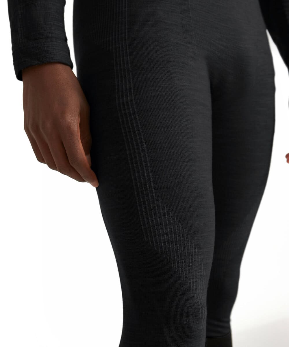 Термолеггінси Wool-Tech зі зручною посадкою зберігають тіло сухим і теплим за низьких і дуже низьких температур. Поєднання високоякісної вовни мериноса, стійкої до запахів, і високоякісного переробленого поліаміду забезпечує чудове управління вологістю та терморегуляцію. Легінси створені з урахуванням анатомічної форми тіла та спортивних рухів для максимального комфорту. Підходять для занять низької та середньої інтенсивності