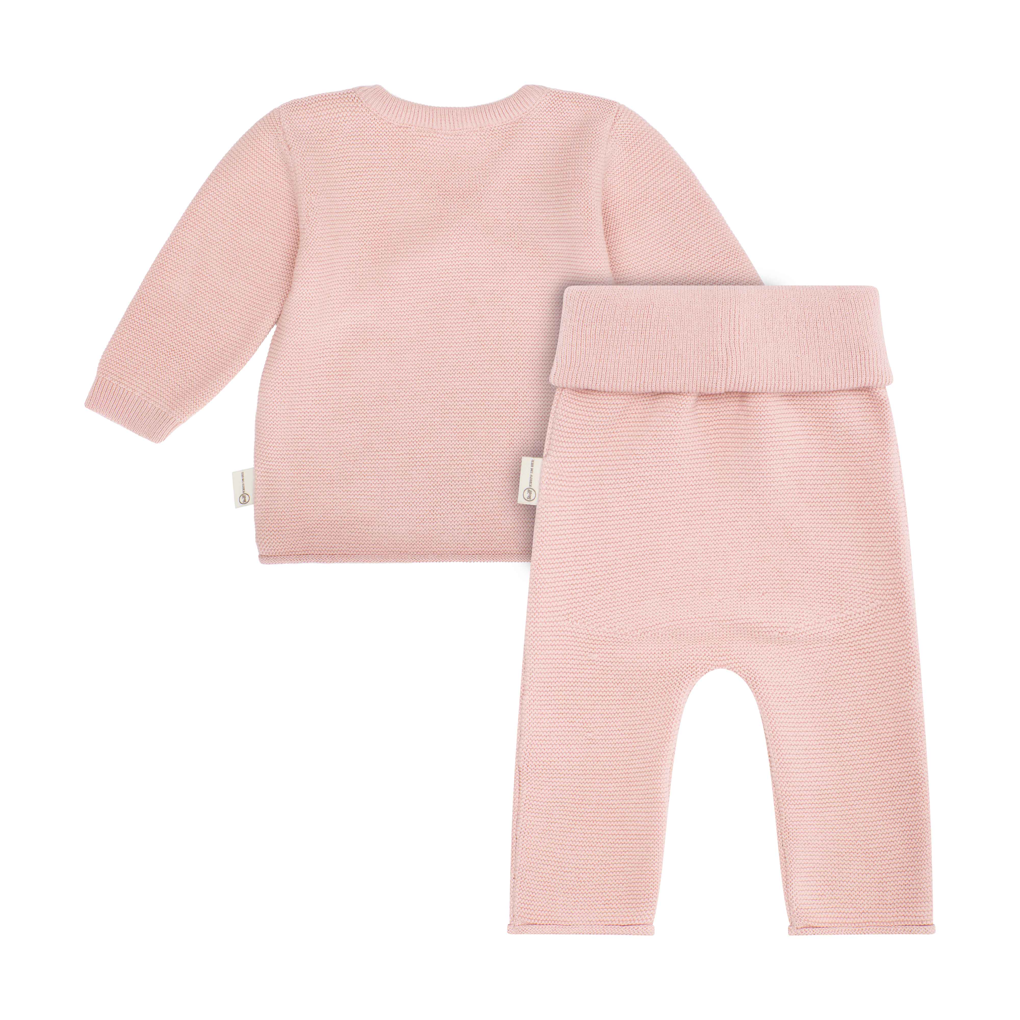 Комплект Basic з 2 речей - кофта і трикотажні штани з органічної бавовни - порадує малюка теплом і м'якістю на дотик. Кофта застібається збоку на кнопки. Зручні штани ідеально сідають по фігурі завдяки поясу на резинці. Напрочуд м'який бавовняний трикотаж забезпечує малюкам свободу рухів під час пізнання світу. Натуральний комплект – відмінний вибір як для дому, так і для прогулянок.