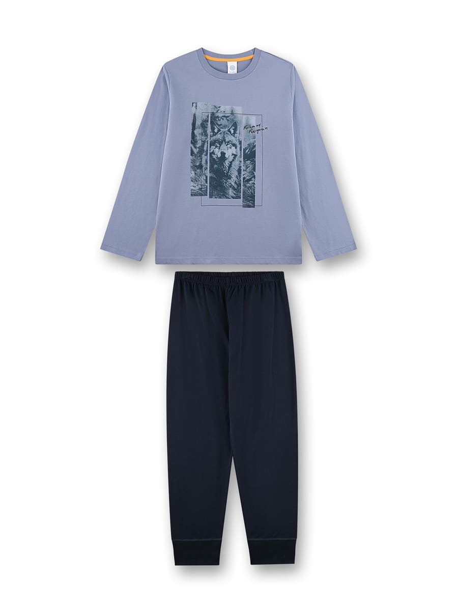 Піжама Wolves з ефектним принтом вовків передає дух свободи та сили. Натуральна бавовна забезпечує м’якість і комфорт, дозволяючи шкірі дихати протягом усієї ночі. Лонгслів із довгим рукавом та штани на резинці ідеально підходять для сну й домашнього відпочинку, поєднуючи стиль і зручність.