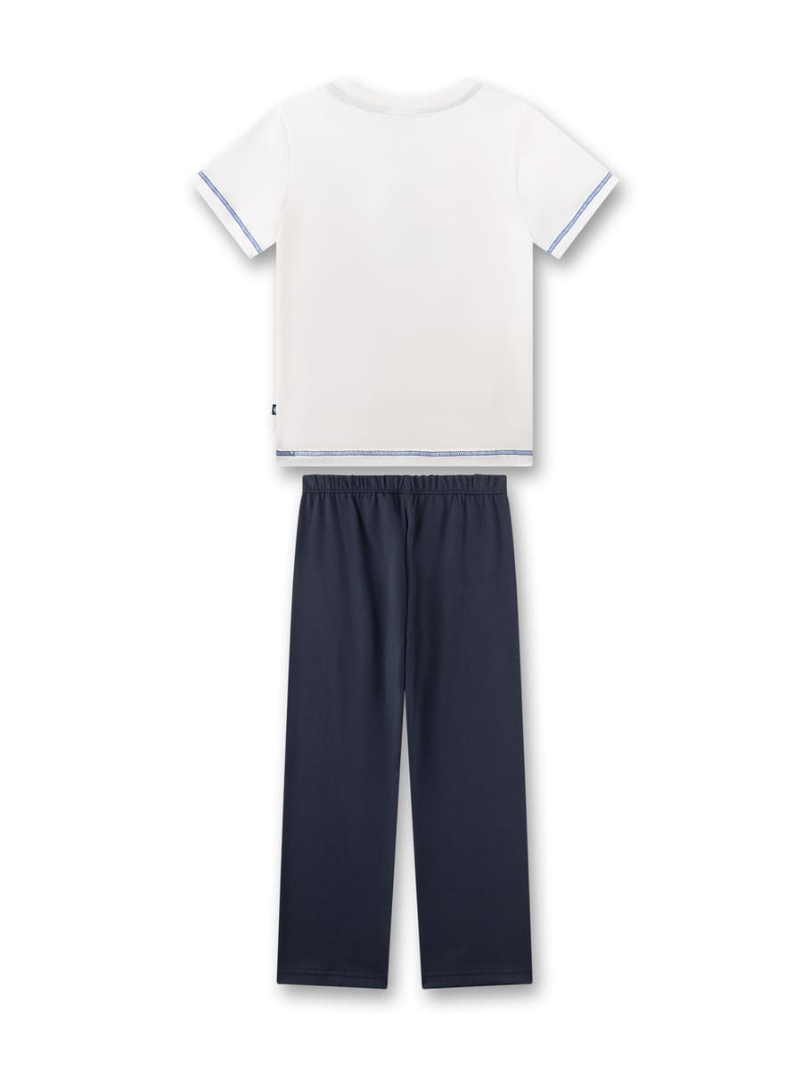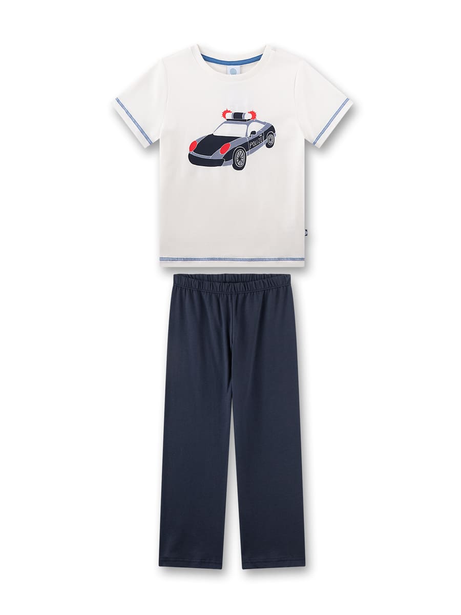 Піжама Police Car — стильний комплект для хлопчиків, який сподобається маленьким шанувальникам спецтехніки. Модель виконана з м’якого трикотажу на основі натуральної органічної бавовни, що забезпечує комфорт, повітропроникність і приємні відчуття під час сну. Світла футболка з коротким рукавом прикрашена яскравим принтом поліцейського автомобіля, контрастна обробка додає акуратності образу. Темно-сині штани з еластичним поясом гарантують зручну посадку та свободу рухів. Матеріал сертифікований незалежними європейськими інститутами Organic Cotton, безпечний до здоров'я дитини, вільний від шкідливих сполучень.
