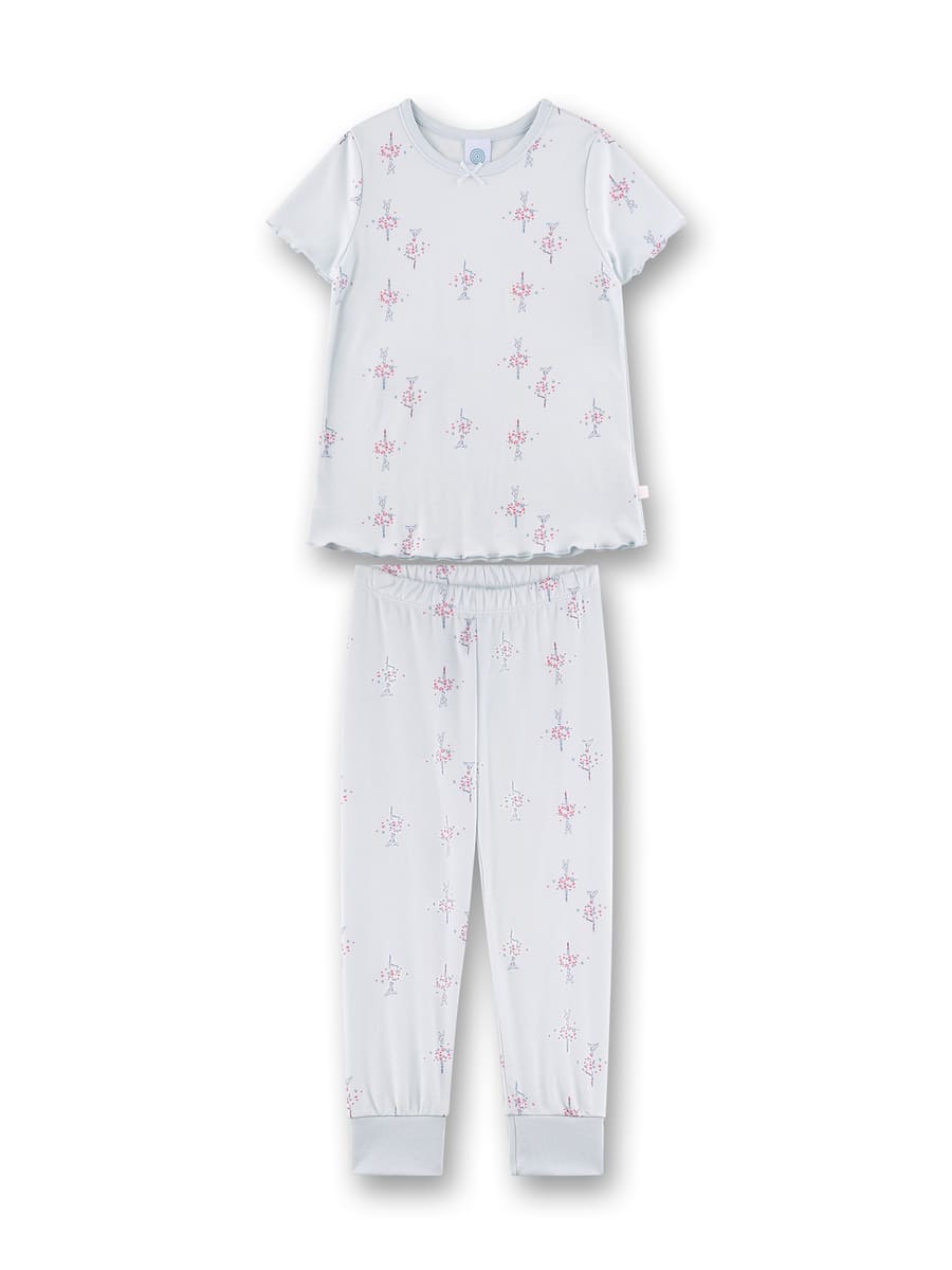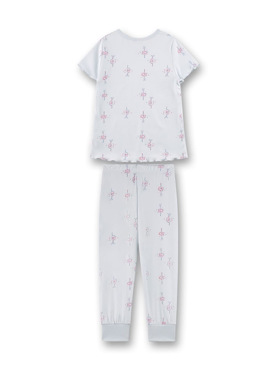 Піжама Pink Flowers наповнює вечір ніжністю та легкістю завдяки своєму чарівному квітковому дизайну. М’яка бавовняна тканина забезпечує комфорт і приємні відчуття на шкірі, ідеально підходить для дитячого сну. Світлий топ із короткими рукавами прикрашений бантиком на горловині й хвилястою обробкою по краю, а штанці з манжетами та еластичним поясом дарують зручність і свободу рухів. Ідеальний комплект для теплих ночей і солодких снів.