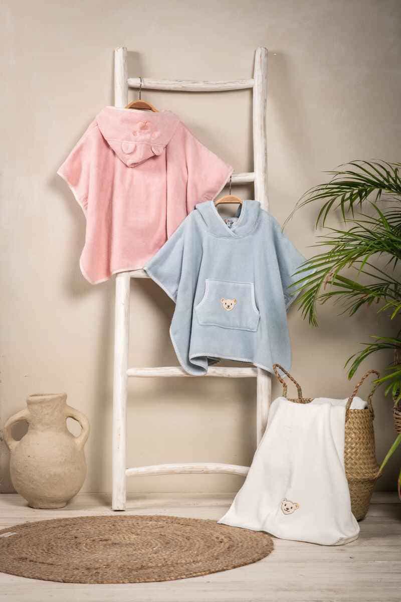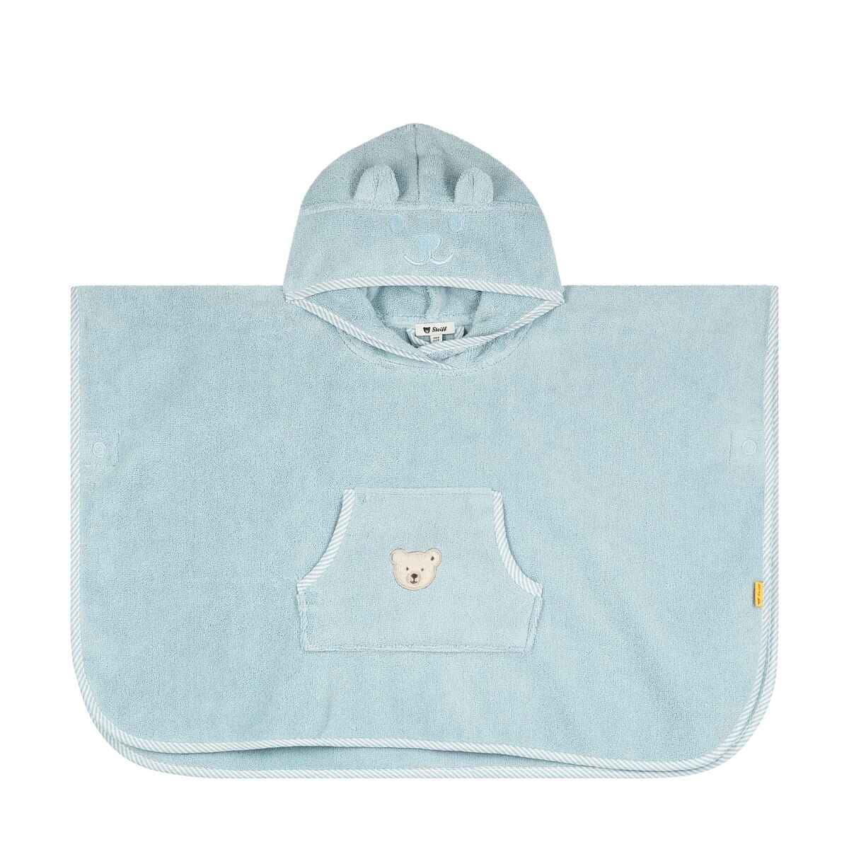Пончо для ванної Basic з капюшоном чудово зігріє малюка після купання. Пухнастий рушник із натуральної, безпечної бавовни м'яко торкається ніжної шкіри, не травмуючи її. Кнопки з боків забезпечують ідеальну посадку. Пухнаста аплікація у вигляді ведмедика Steiff відмінно вписується в загальний дизайн і надає виробу особливої чарівності.