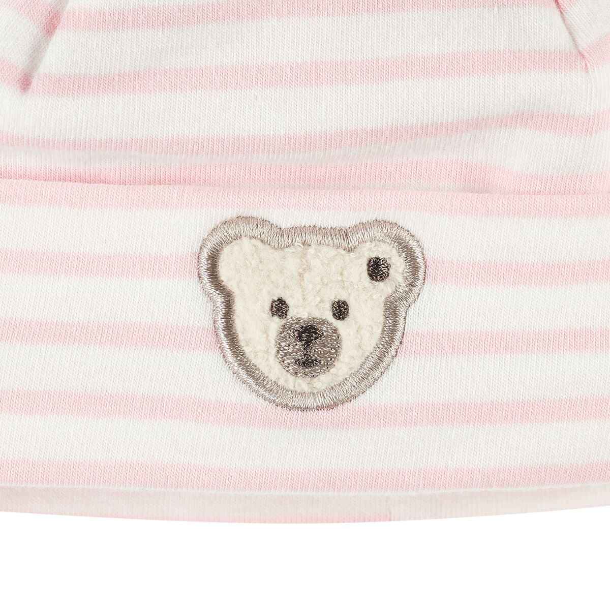 Мила шапочка в ніжну смужку стане ідеальним аксесуаром для прогулянок у будь-яку пору року. М'який подвійний шар джерсі забезпечує тепло і комфорт, ніжно прилягаючи до голівки малюка. Шапка створена на основі безпечної сертифікованої бавовни, яка не викликає подразнень і має м'яку, приємну текстуру.