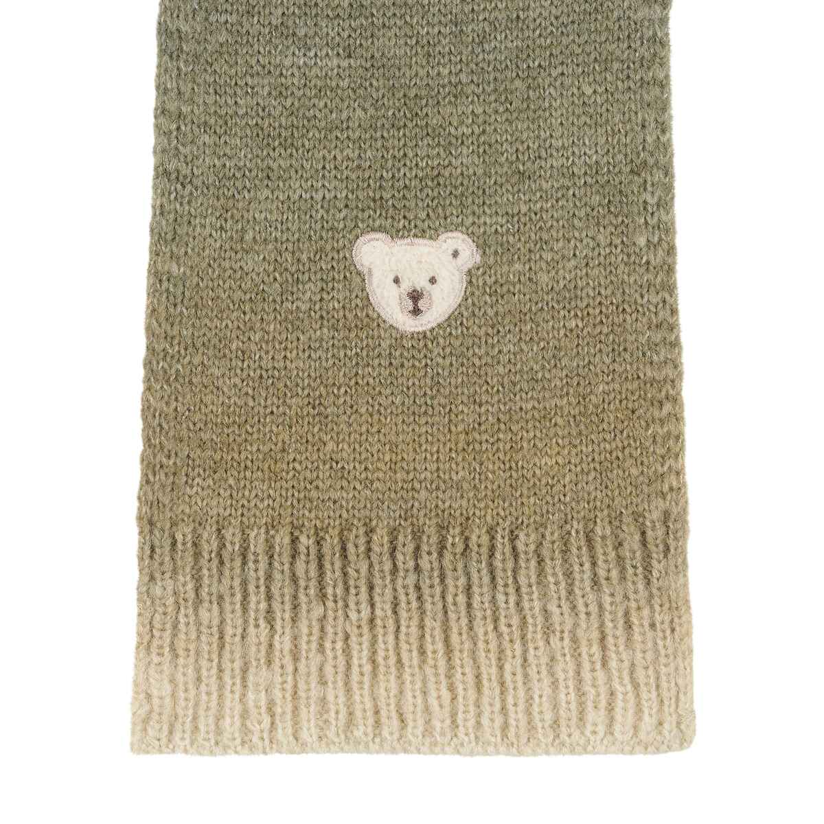 Шарф Nordicland створений, щоб дарувати тепло й комфорт під час прохолодних прогулянок. М’якій в’язаний матеріал зі стильним градієнтом у природних бежевих відтінках легко поєднується з будь-яким образом та додає йому сучасного шарму. Тканина приємна до шкіри і чудово зігріває під час активних ігор чи спокійних прогулянок. Спереду шарф прикрашений класичним ведмедиком Steiff — милим акцентом, що робить аксесуар особливо затишним.