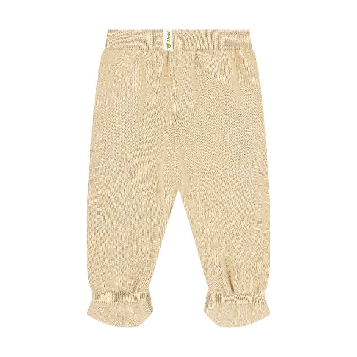 Штани Baby Wellness — затишна модель, виконана з м’якого в’язаного бавовняного полотна, що ніжно огортає дитину комфортом. Еластичний пояс забезпечує надійну посадку та свободу рухів, м’який відтінок робить дизайн універсальним і вишуканим. Іконичний ведмедик Steiff позаду додає милий акцент і створює відчуття тепла та затишку. Ідеальний вибір для щоденного комфорту та ніжних обіймів.