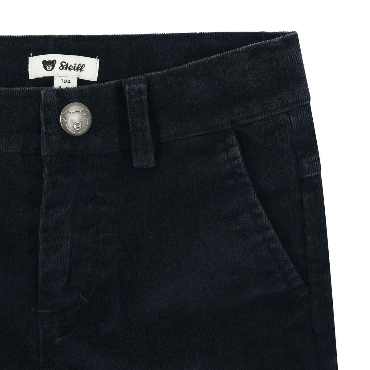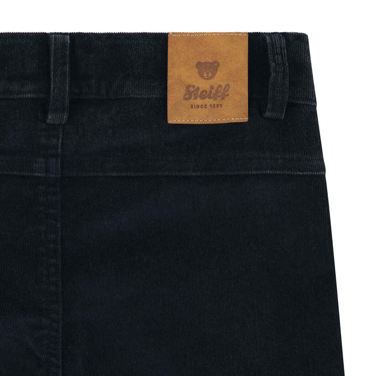 Класичні штани Woodland з м’якого вельвету стануть стильним і зручним вибором на кожен день. Натуральна еластична бавовняна тканина забезпечує приємні відчуття та свободу рухів. Косі бічні кишені додають практичності, а пояс із блискавкою та ґудзиком гарантує комфортну посадку. На поясі ззаду розташований фірмовий шкіряний патч із ведмедиком Steiff — стильний акцент у повсякденному образі.