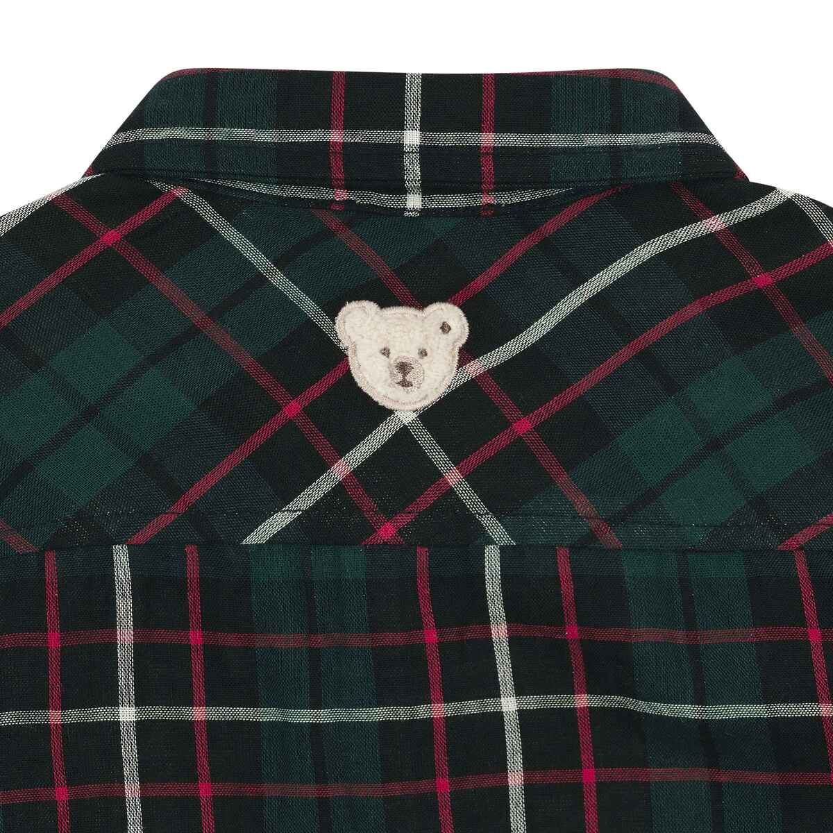 Фланелева сорочка Celebration легко поєднує затишок і стиль у щоденному гардеробі хлопчика. Класичний клітинковий візерунок у темно-синіх, зелених і червоних тонах створює виразний, сучасний образ. М’який хлопок дарує тепло та комфорт протягом усього дня. Традиційний комір, планка на ґудзиках і нагрудні кишені додають акуратності та практичності. На спинці розташований фірмовий ведмедик Steiff — ніжний акцент, що завершуює стильний вигляд.