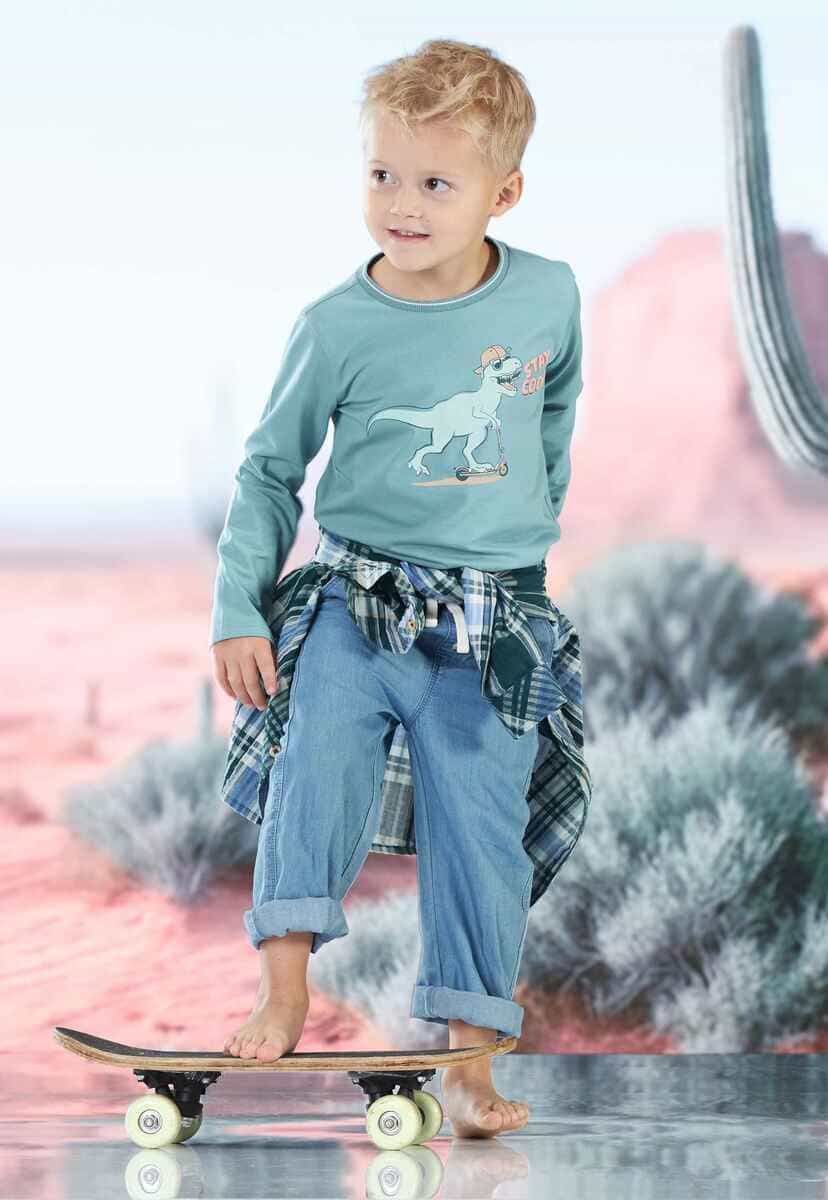 Сорочка Dinosaur поєднує класичний стиль і сучасний комфорт, створює бездоганний образ для будь-якої події. Натуральна бавовняна тканина приємна на дотик, добре пропускає повітря, забезпечує комфорт протягом усього дня. Вільний крій дарує легкість рухів, підходить для активного проведення часу. Візерунок у клітинку з гармонійним поєднанням відтінків додає образу виразності та стилю. Класичний комір і планка з ґудзиками формують акуратний силует. Фірмовий м’який мотив із ведмедиком на грудях підкреслює турботливий характер моделі та додає впізнаваного шарму.