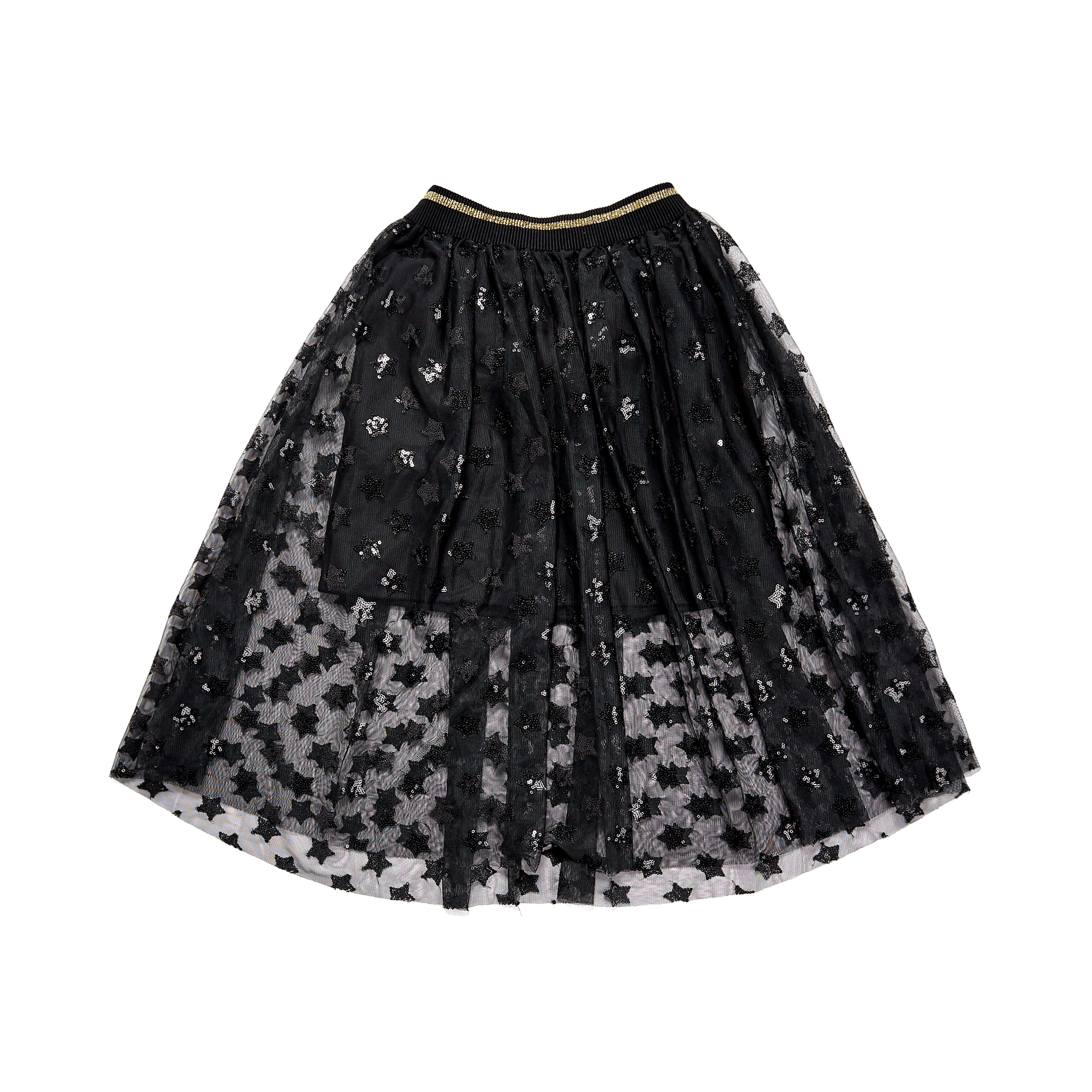 Спідниця Auriga вирізняється багатошаровим дизайном і повітряною напівпрозорою тканиною, що створює легкий об’єм і красиве сяйво під час руху. Верхній шар виконано з делікатного тюлю з візерунком, який додає образу виразності та святкового настрою.