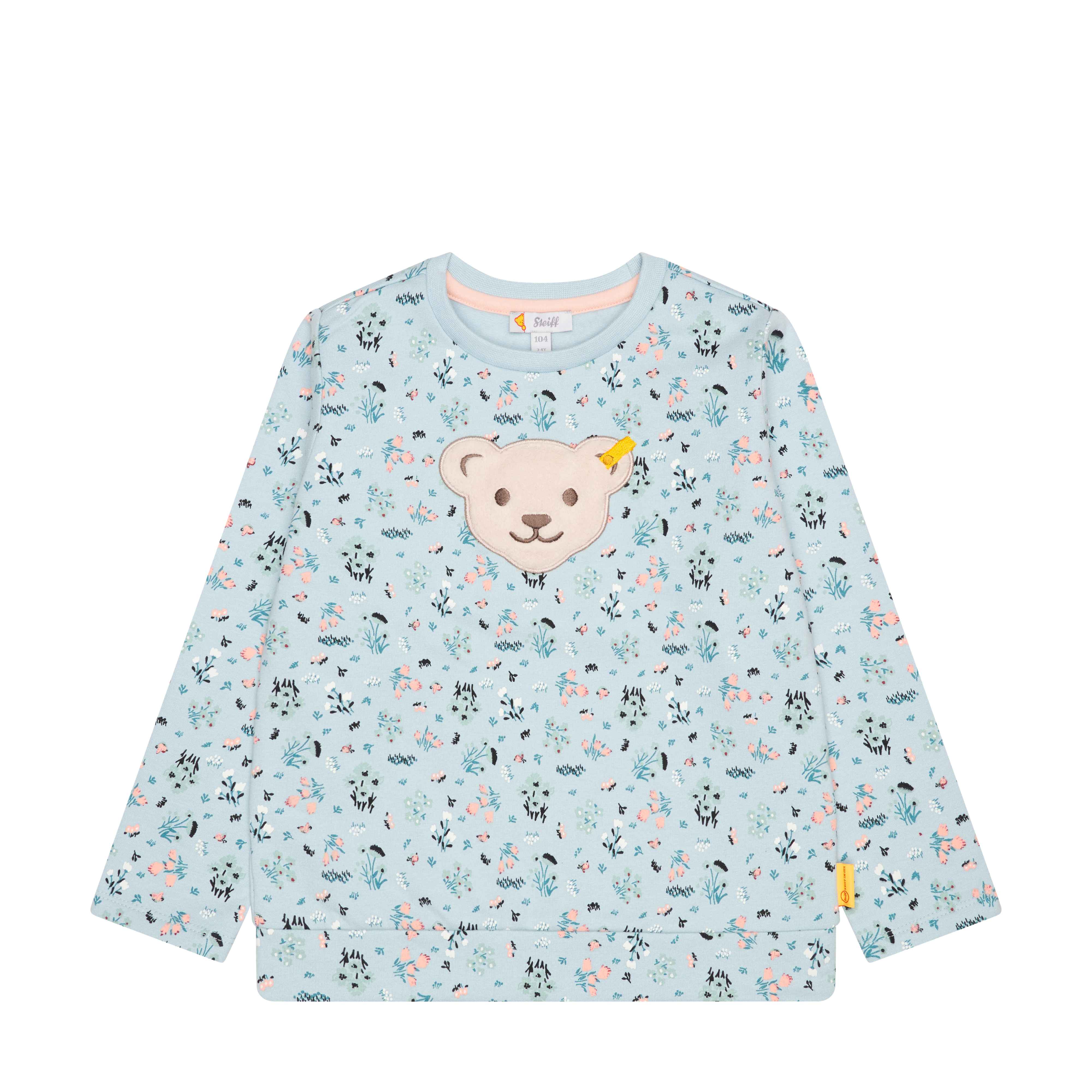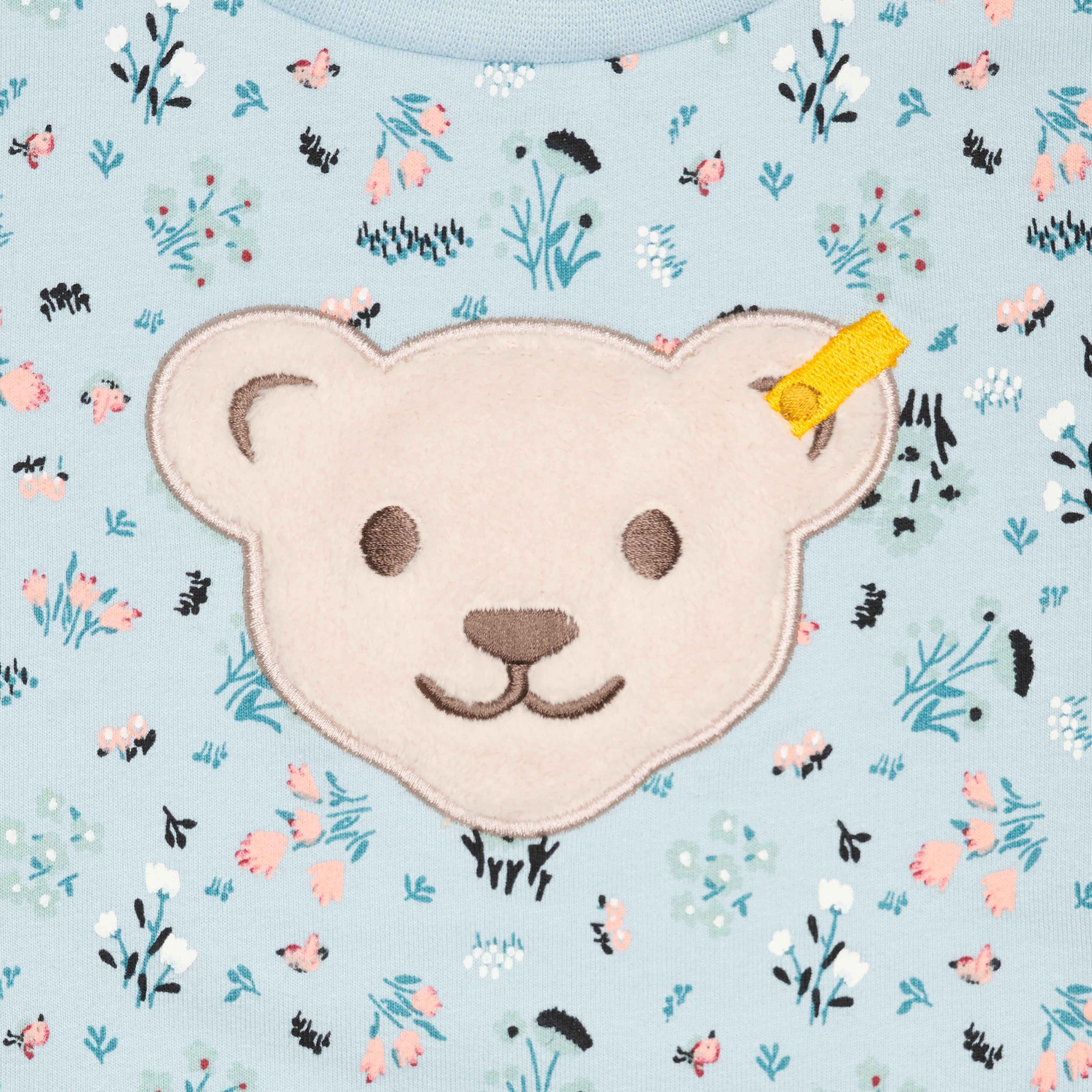 Світшот Bird's Twittering з квітковим принтом на всьому виробі здатний прикрасити будь-який гардероб малятка. М'який світшот приємний на дотик і добре зігріває. Еластичні манжети дарують комфорт під час одягання. Вільний крій не сковує рухів. Пухнастий ведмедик Steiff Teddy з вбудованою пищалкою прикрашає центральну частину грудей. Кумедний звук піднімає настрій і дає змогу з посмішкою вирішити багато складних ситуацій. Аплікацію з пищалкою можна прати.