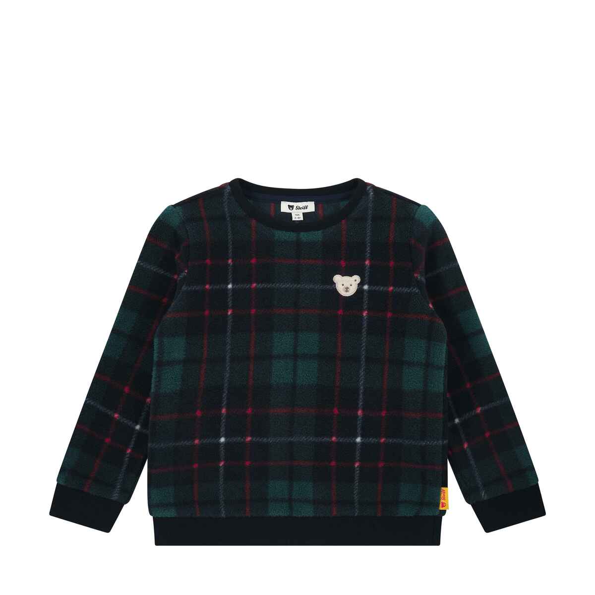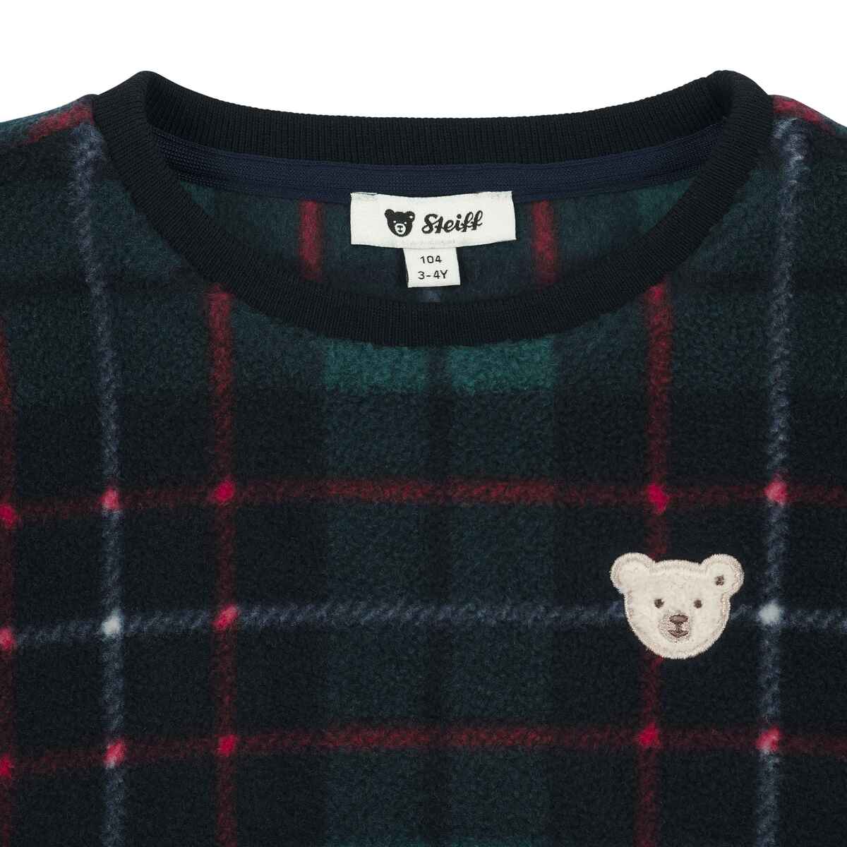 М’який флісовий світшот Celebration створює приємне тепло та комфорт у прохолодні дні. Класичний тартановий візерунок у темно-синіх, зелених і червоних тонах виглядає стильно та по-зимовому затишно. Прямий крій із трикотажною горловиною та манжетами забезпечує зручність і свободу рухів під час активних прогулянок. Фірмовий ведмедик Steiff на грудях додає образу особливої чарівності — ідеальний вибір для щоденного тепла та комфорту.