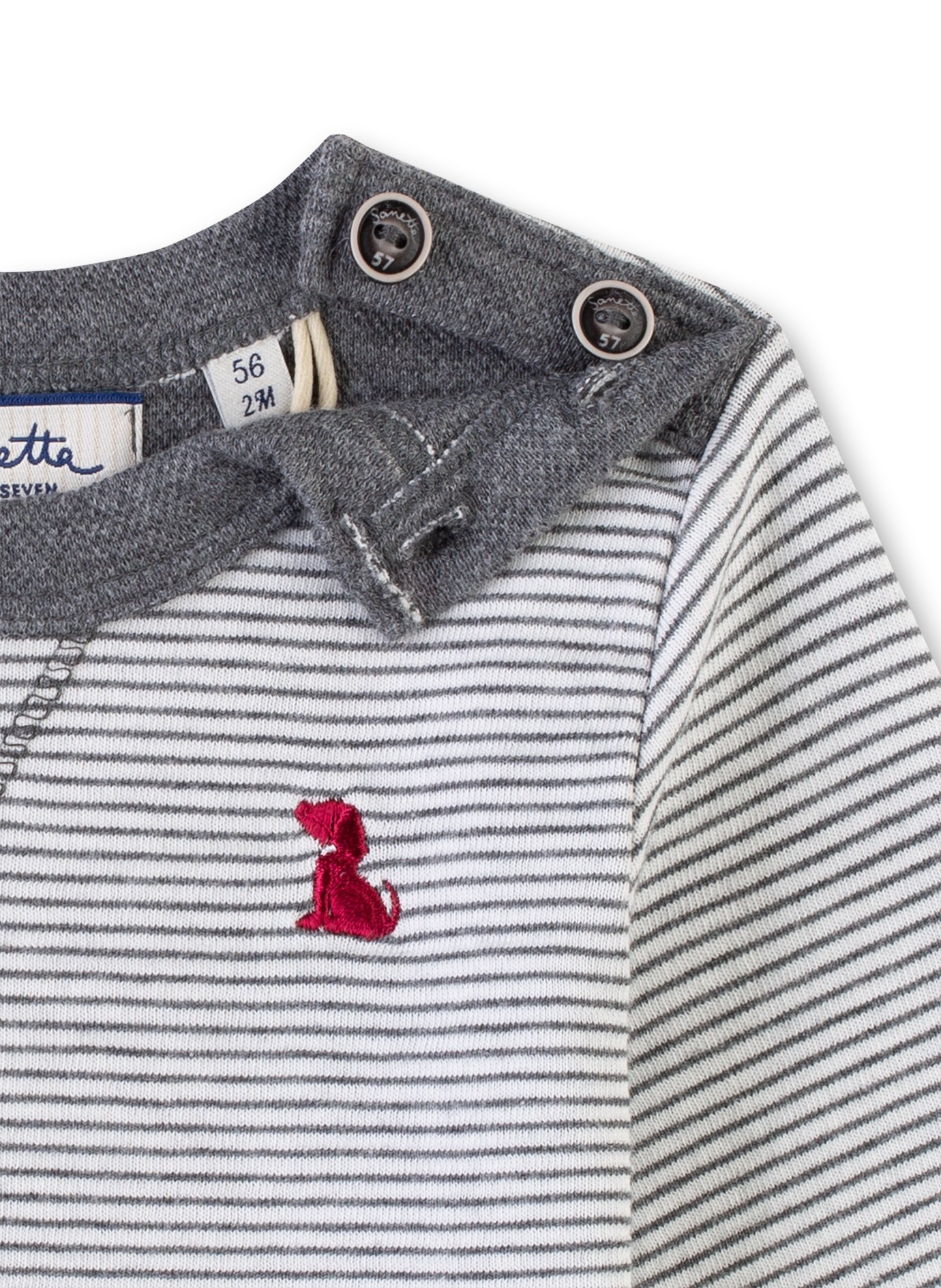 Світшот In the Air — це комфортна базова модель з виразним характером, у якій стримана смужка поєднується з оригінальними авіаційними деталями. Акуратний принт і декоративні елементи додають образу стилю, не перевантажуючи дизайн. Натуральна органічна бавовна м’яка й приємна до тіла, добре пропускає повітря та підходить для щоденного носіння. Кнопки на плечі полегшують процес одягання, манжети й низ забезпечують зручну посадку та свободу рухів. Матеріал сертифікований незалежними європейськими інститутами Organic Cotton, безпечний до здоров'я малюка, вільний від шкідливих сполучень.
