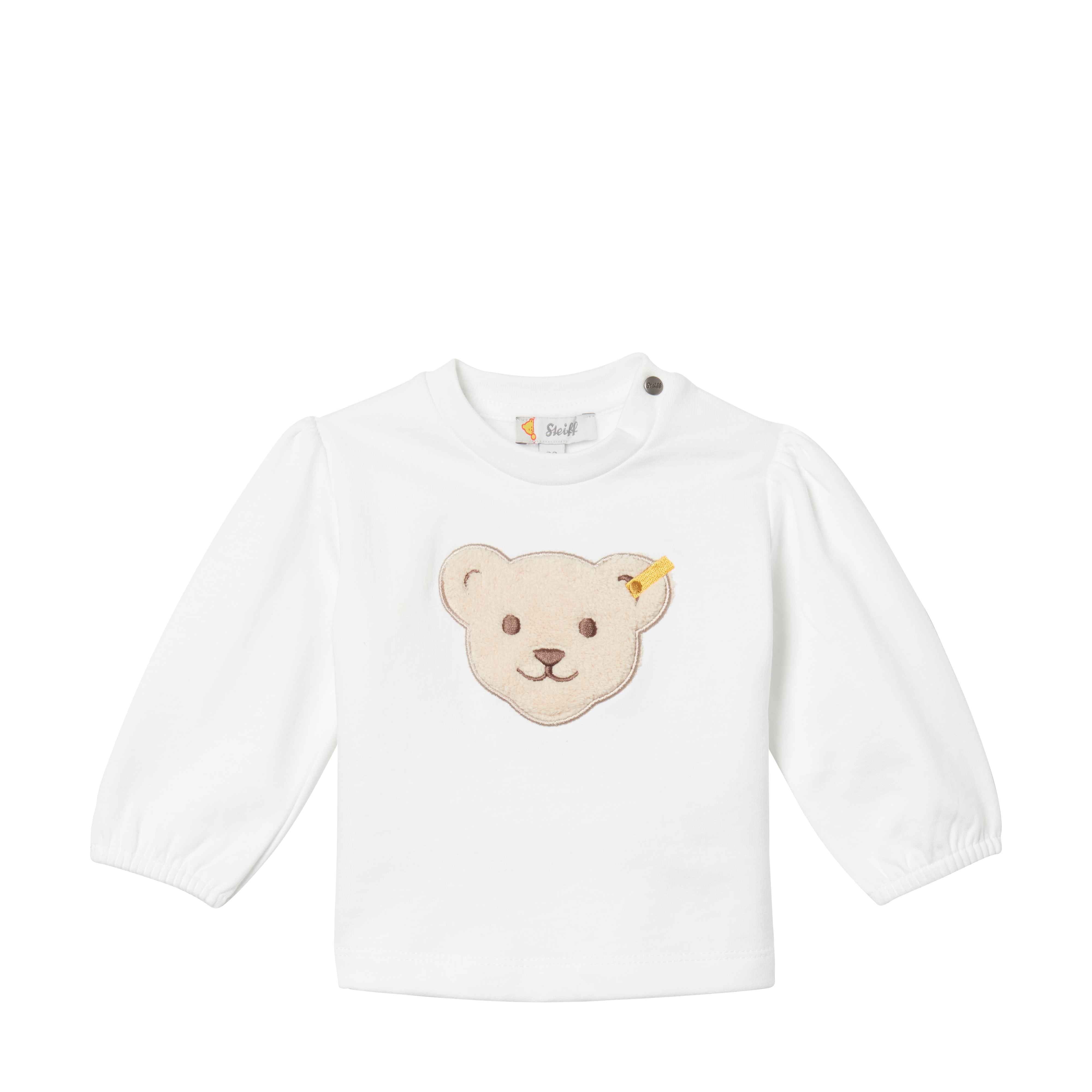 Оксамитовий світшот Rose Denim з органічного велюру на бавовняній основі має ніжне і чарівне виконання. Тканина безпечна для немовляти і приємна на дотик. Світшот має зручну посадку, яка не сковує рухів. Еластичні манжети з м'якими резиночками забезпечують особливий комфорт. Пухнастий ведмедик Steiff Teddy ідеально вписується в загальний дизайн і надає виробу особливої чарівності.