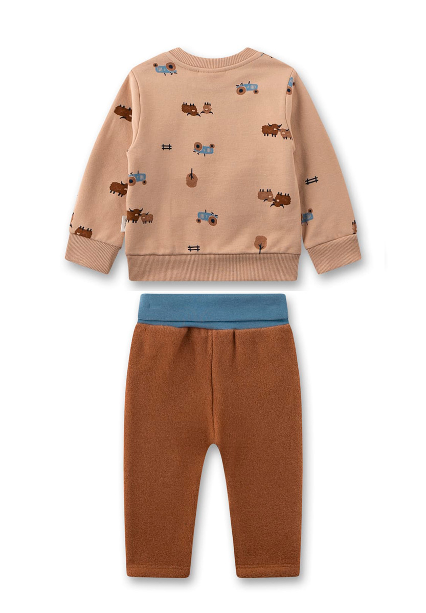 М’який костюм Lambs створений для затишку та свободи рухів малюка. Светрик із милим принтом тракторів та овечок доповнюють теплі штанці з флісовою текстурою. Еластичний пояс забезпечує комфортну посадку, натуральна органічна бавовна з невеликим додаванням еластану приємна до тіла й добре зберігає форму після прання.