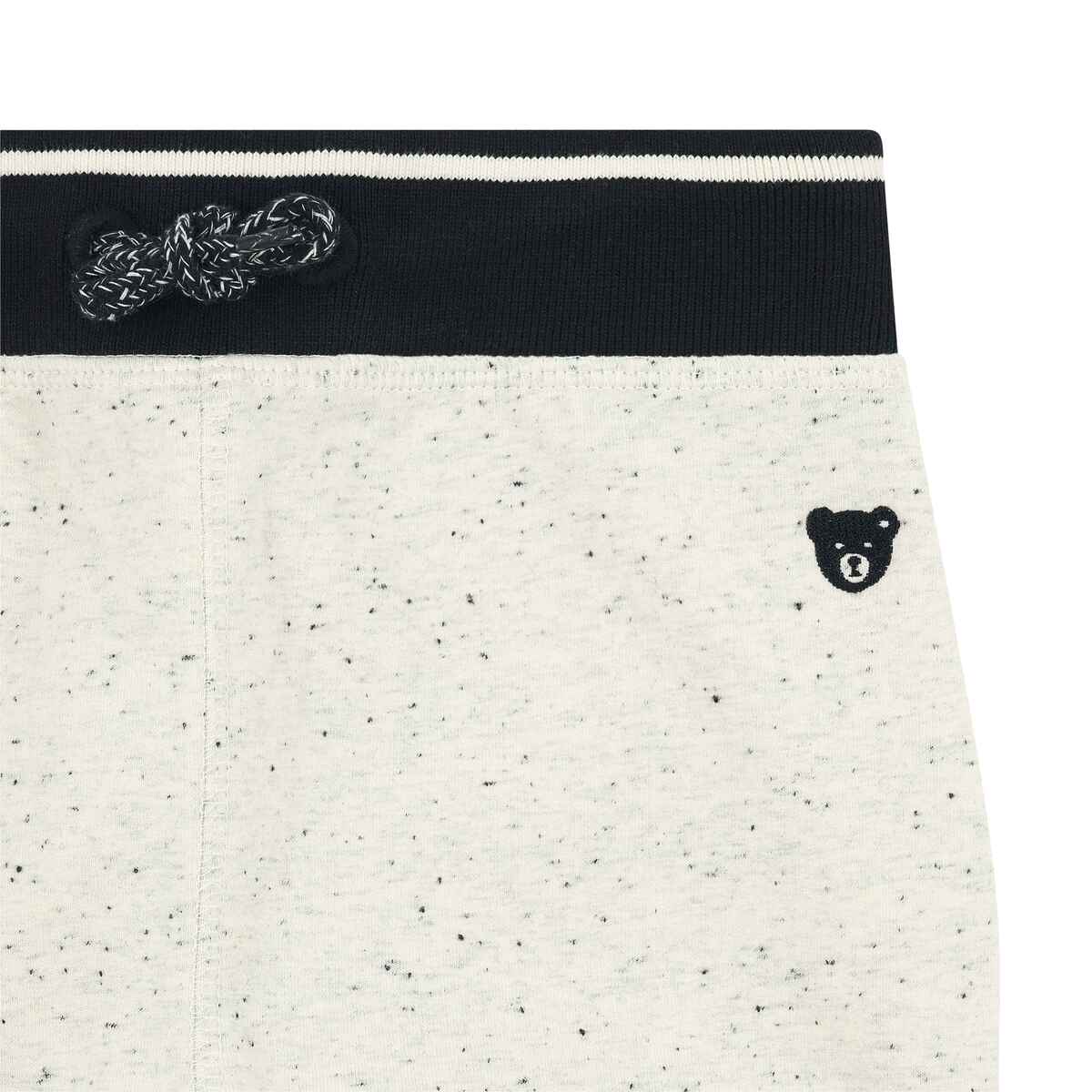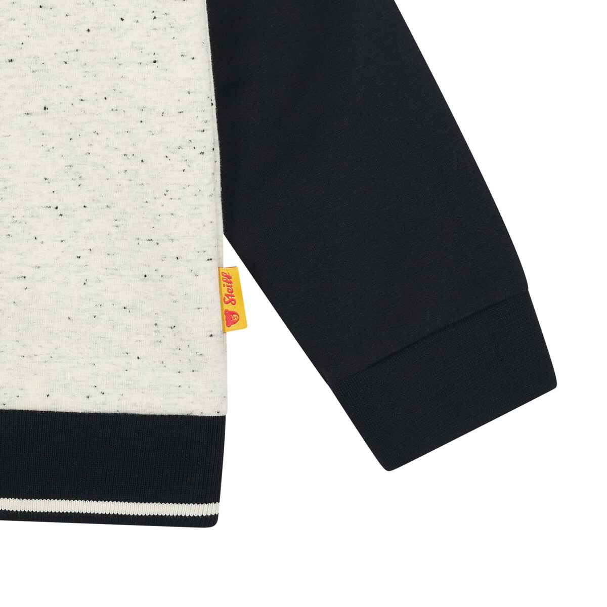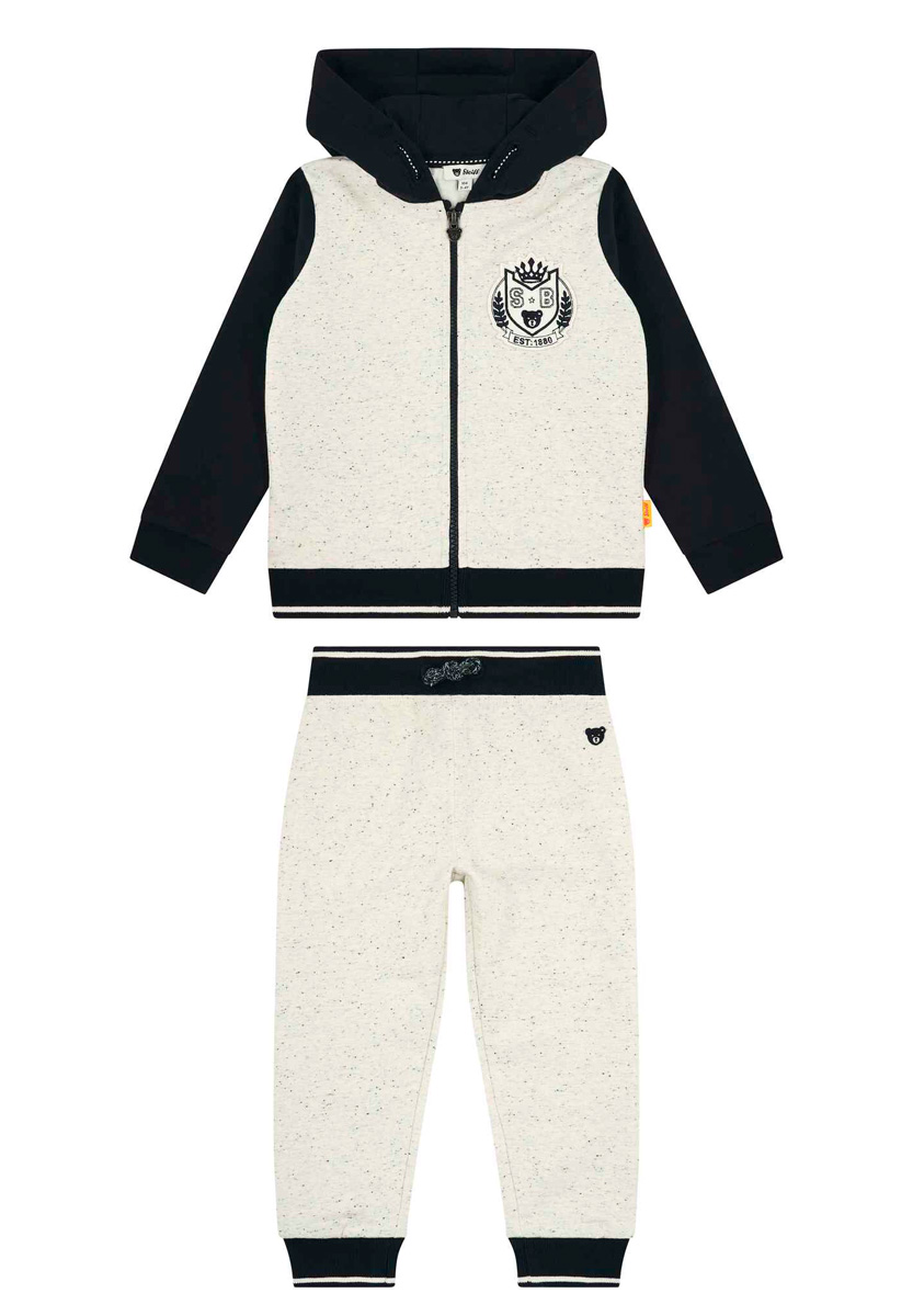 Стильний костюм Celebration у контрастних кольорах поєднує спортивний дизайн і м’який комфорт на кожен день. Застібка-блискавка з захистом підборіддя та м’які манжети забезпечують зручність і гарну посадку, поєднання меланжевого бежу з темно-синіми деталями створює сучасний вигляд. На грудях сяє об’ємний гербовий елемент у поєднанні з класичним ведмедиком Steiff, додаючи образу характеру. Штани з еластичним поясом і зав’язками дарують свободу рухів і комфорт, акуратні контрастні акценти підкреслюють спортивний стиль. М’яка тканина приємна до тіла, роблячи костюм універсальним вибором для прогулянок, ігор та щоденного носіння.