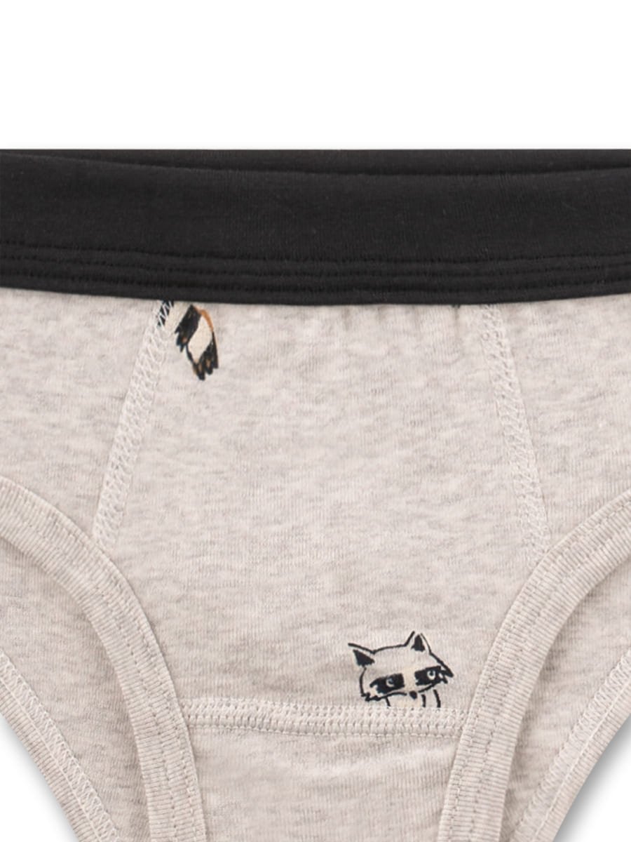 Труси Raccoon — зручна та стильна базова білизна для хлопчиків. М’яка бавовняна тканина в меланжевому бежевому відтінку із кумедним принтом єнотів забезпечує комфорт і приємні відчуття протягом усього дня. Еластичний м’який пояс у контрастному чорному кольорі надійно фіксує посадку, не здавлюючи шкіру. Дихаючий матеріал легко переться й стійкий до сушіння, що робить модель практичною та довговічною.