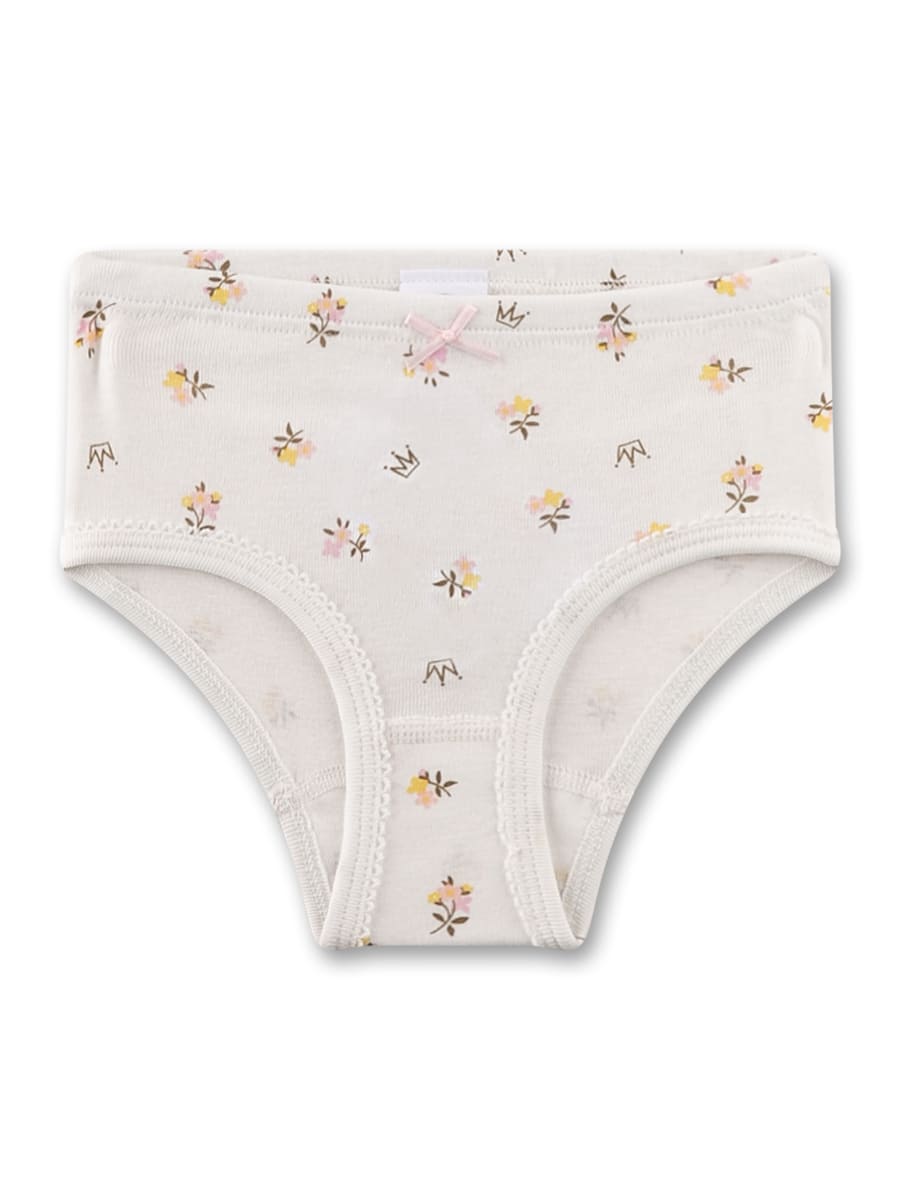 Модель прикрашена витонченим принтом із маленькими букетами квітів, листочками, милими коронами. Такий малюнок виглядає ніжно та казково. Маленький рожевий бантик на поясі додає чарівного декоративного акценту. М’яка обробка країв забезпечує комфортне прилягання, не створює відчуття тиску. Матеріал сертифікований незалежними європейськими інститутами Organic Cotton, безпечний до здоров'я дитини, вільний від шкідливих сполучень.