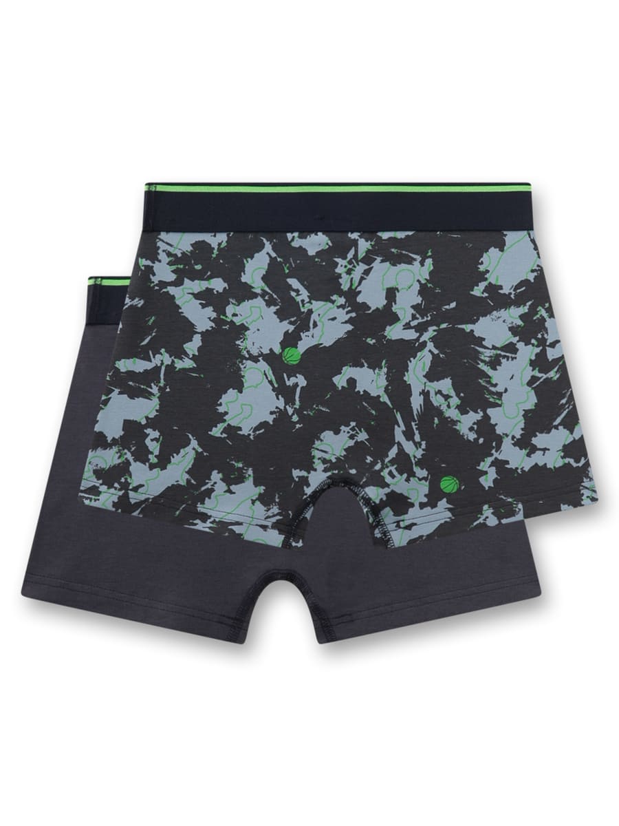 Труси-боксери Green Style — зручний комплект для хлопчиків із двох пар, що поєднує практичність і сучасний дизайн. Модель виготовлена з м’якого бавовняного трикотажу, матеріал добре тягнеться, приємно прилягає до тіла та забезпечує комфорт протягом дня. Одна пара виконана в однотонному темному кольорі, інша прикрашена динамічним камуфляжним принтом із зеленими акцентами. Широкий еластичний пояс гарантує надійну посадку та свободу рухів.