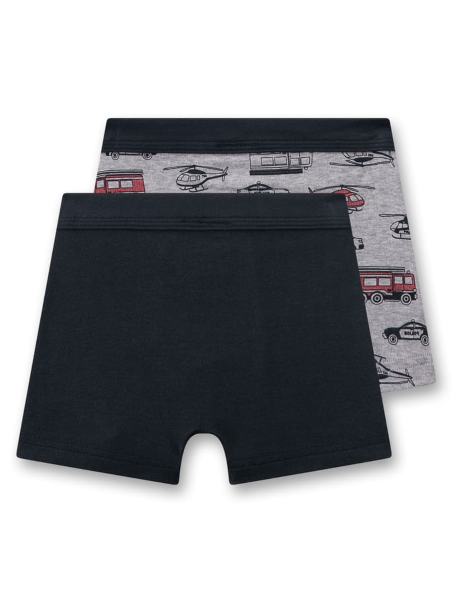 Труси-боксери Grey Style — практичний комплект для хлопчиків із яскравим принтом транспорту, що робить повсякденну білизну цікавою та додає образу активного настрою. Вироби виготовлені з натуральної бавовни у м’якому меланжевому трикотажі в рубчик, який добре пропускає повітря та забезпечує приємні відчуття під час носіння. У наборі дві моделі: одна однотонна темно-синя, інша прикрашена веселим принтом. Еластичний пояс м’яко фіксується на талії, забезпечуючи комфортну посадку без тиску. Завдяки зручному крою боксери чудово підходять для щоденного використання та активного способу життя.
