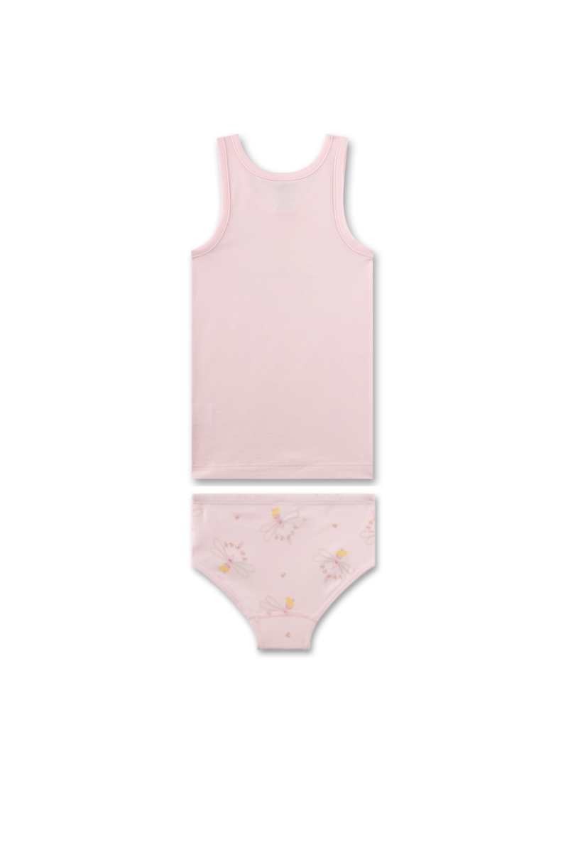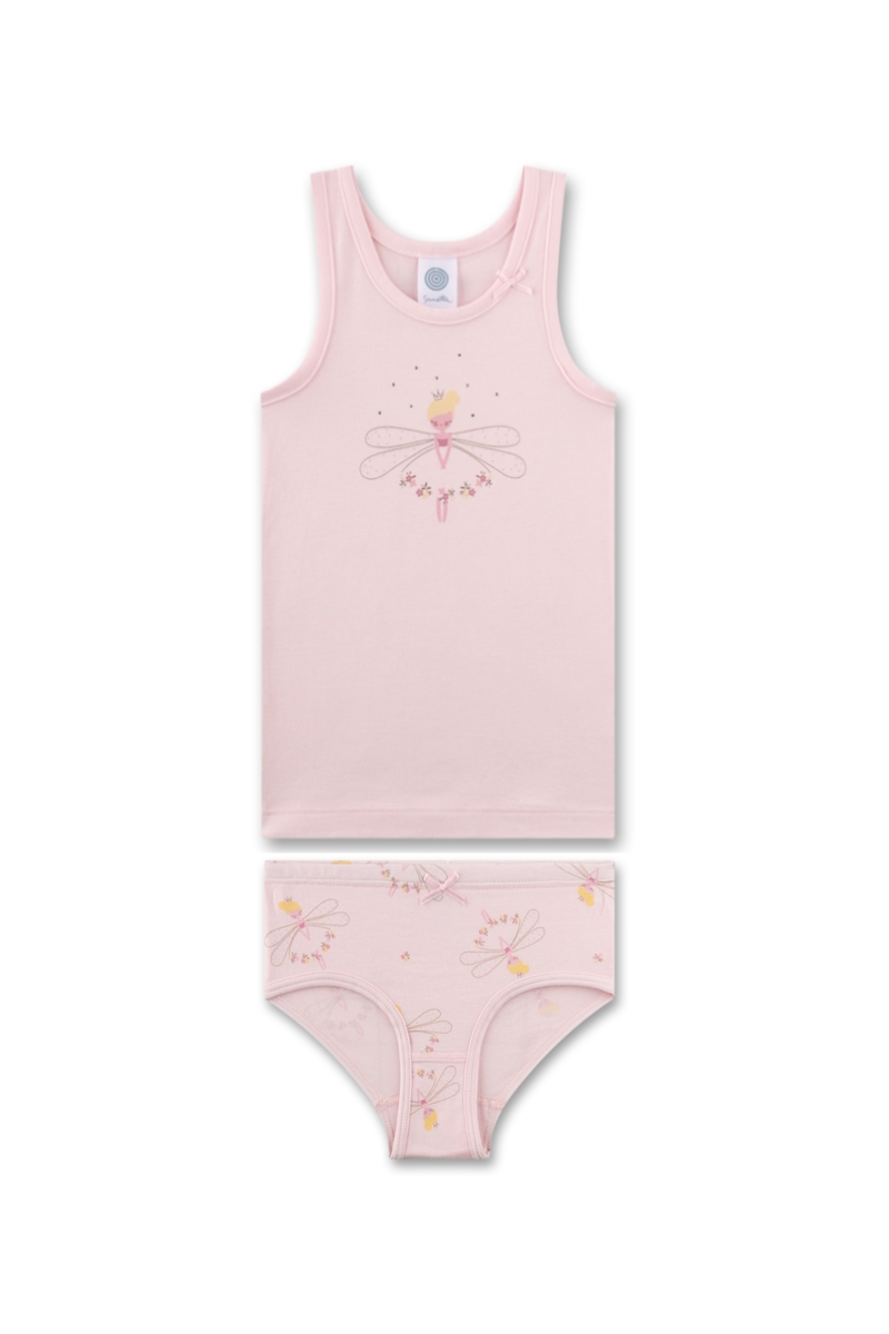 Изысканный комплект Dragonfly сочетает красивый детский дизайн и качественные материалы для ежедневного комфорта. Сочетание хлопка и модала создаёт мягкую приятную ткань с хорошей воздухопроницаемостью. Уникальная смесь материалов с эластичными волокнами обеспечивает удобную посадку и свободу движений. Комплект состоит из майки и трусов, выполненных в гармоничном стиле. Нежный розовый оттенок украшен милым принтом с очаровательной феей и изящными крыльями. Небольшой бантик у выреза майки добавляет деликатный декоративный акцент, рисунок на трусах поддерживает общий характер модели.