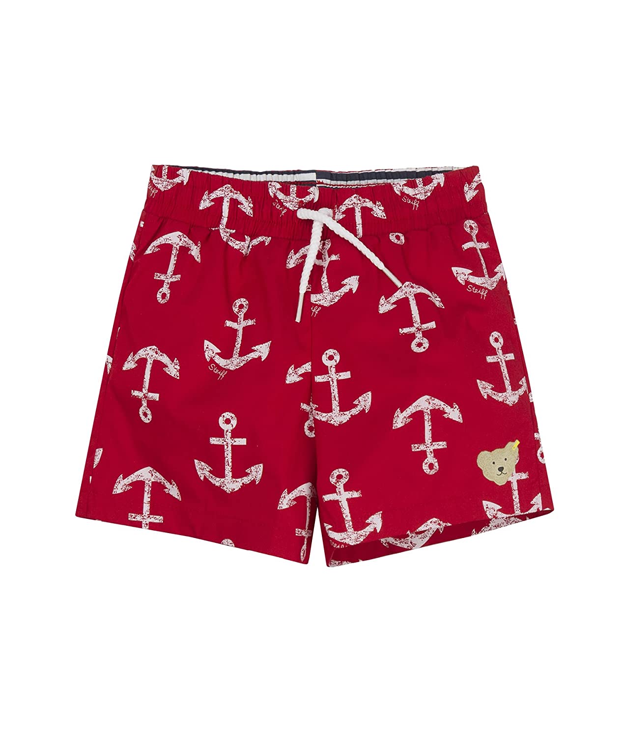 Шорты Beach Wear с ярким морским принтом — отличный выбор для летних приключений. Универсальный красный цвет, удобный пояс на шнурке и узнаваемый мишка Steiff создают идеальный образ для пляжа или прогулок. Сшиты из лёгкой летней ткани, которая быстро сохнет и приятна к телу.