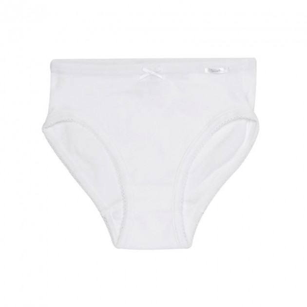 Трусы-слипы для девочек из высококачественного трикотажа. Огранический хлопок идеален для ежедневного комфорта. Удобный крой и эластичный пояс усиливает эффект. Украшены маленьким бантиком по центру резинки и тонким вязаным кружевом по вырезам для ног.