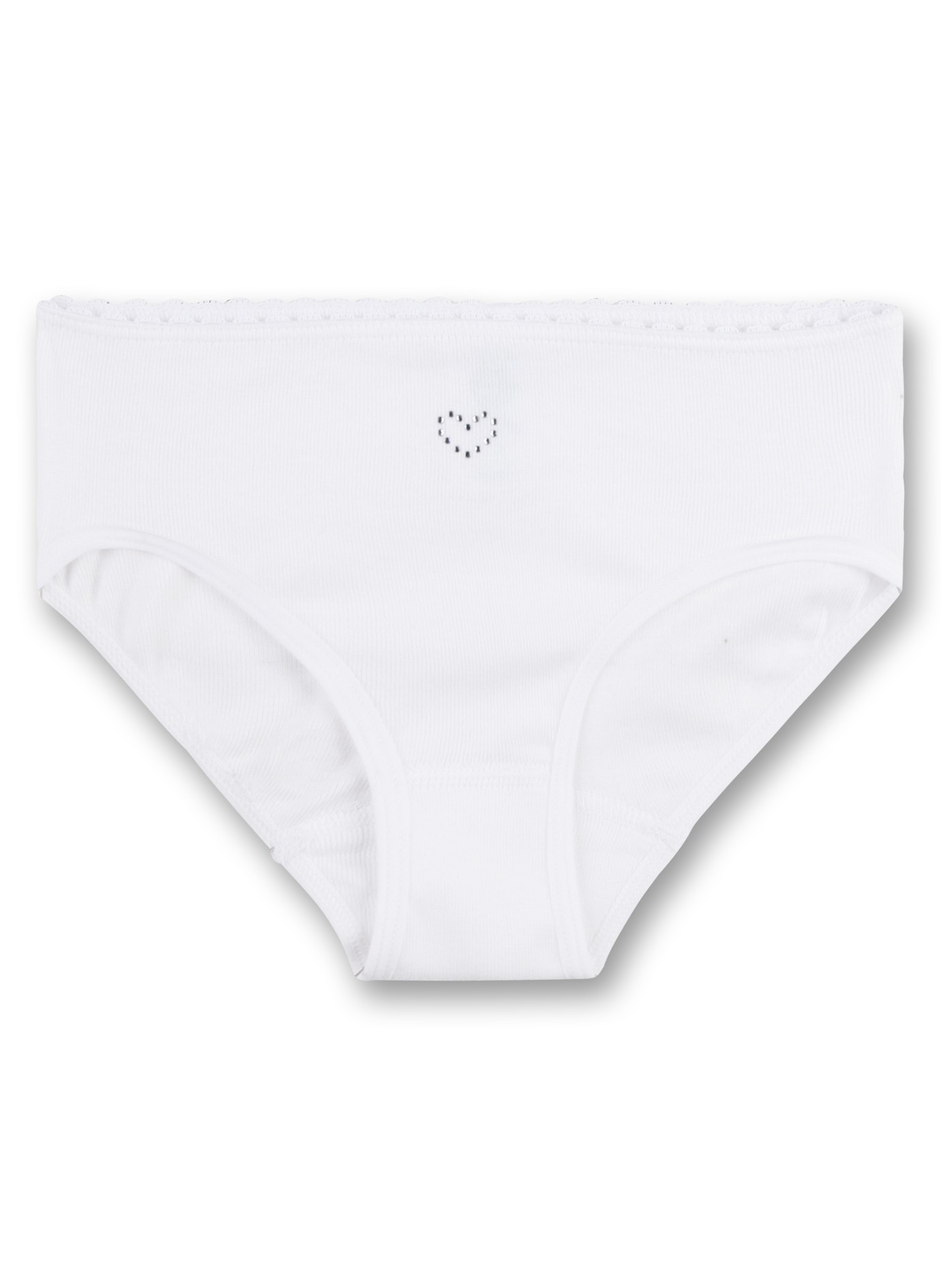 Трусы-слипы для девочек на каждый день. Натуральный органический хлопок, мягкий и тонкий, гарантирует приятные ощущения и отличное самочувствие. Простой лаконичный дизайн классического кроя и нарядного белого цвета дополняется тонким кружевом по резинке и милым сердечком из страз спереди. Универсальные трусики в сочетании с подходящей майкой станет практичным и долговечным комплектом.