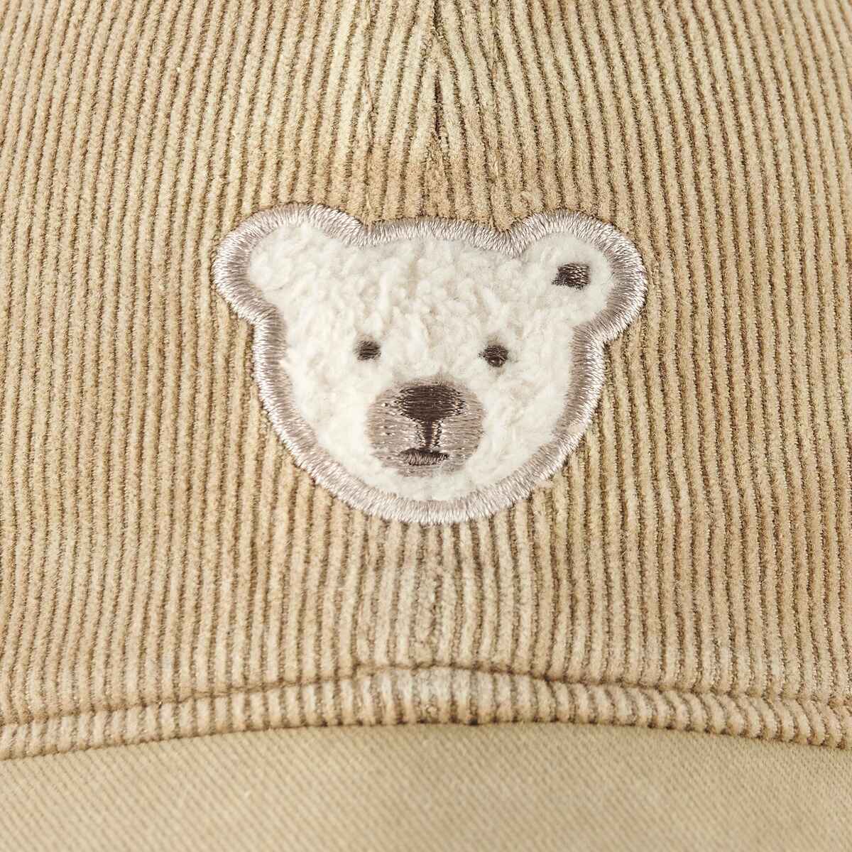 Кепка Woodland з вельвету — стильний аксесуар для будь-яких днів. М’яка тканина у класичному бежевому кольорі додає образу елегантності, еластична вставка ззаду забезпечує комфортну посадку. Злегка вигнутий козирок захищає від сонця, створюючи сучасний спортивний силует. Фірмовий ведмедик Steiff на передній частині завершує дизайн милим акцентом.