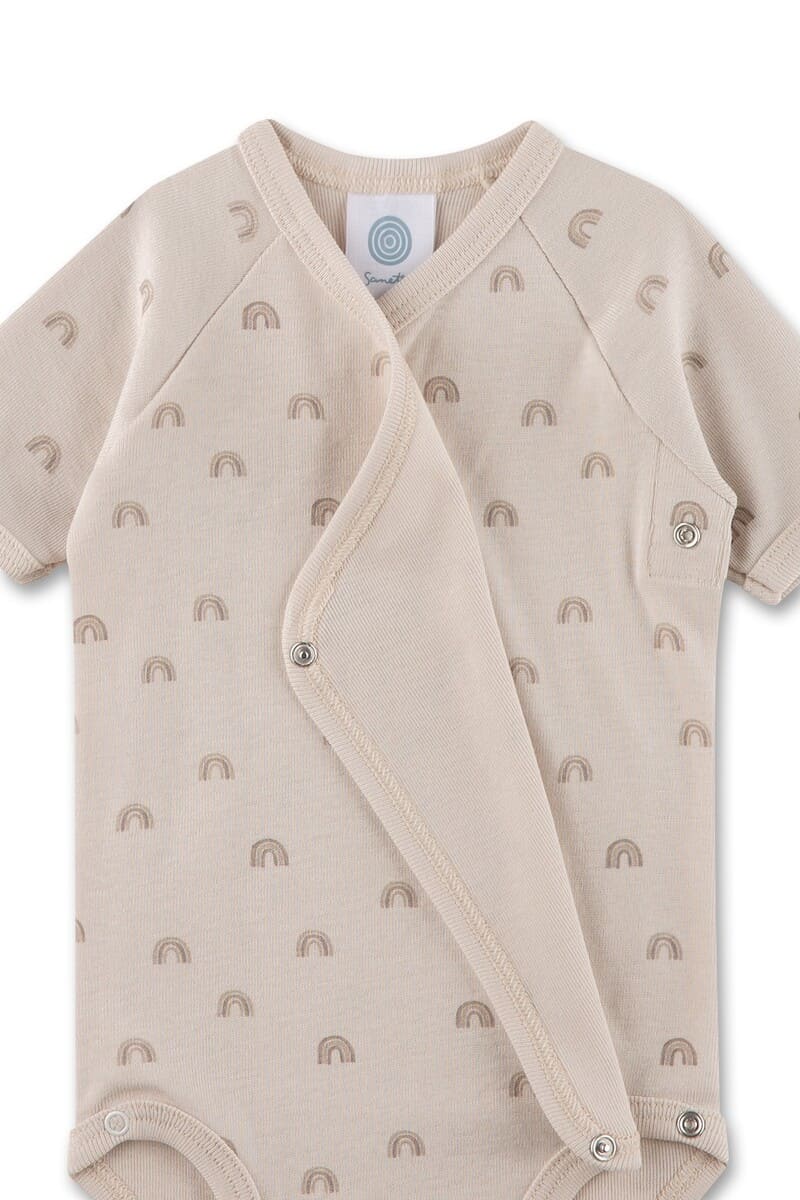 Боді Rainbow — модель із колекції New Born, створена спеціально для новонароджених і перших місяців життя малюка. Виріб виготовлений із м’якого органічного бавовняного трикотажу, який добре пропускає повітря, дбайливо торкається шкіри та забезпечує комфорт протягом усього дня. Практична конструкція із запахом дозволяє легко одягати та знімати боді, не турбуючи малюка. Делікатний принт із маленькими райдугами додає дизайну спокійного й затишного настрою. Зручні кнопки внизу полегшують зміну підгузка. Матеріал сертифікований незалежними європейськими інститутами Organic Cotton, безпечний до здоров'я малюка, вільний від шкідливих сполучень.
