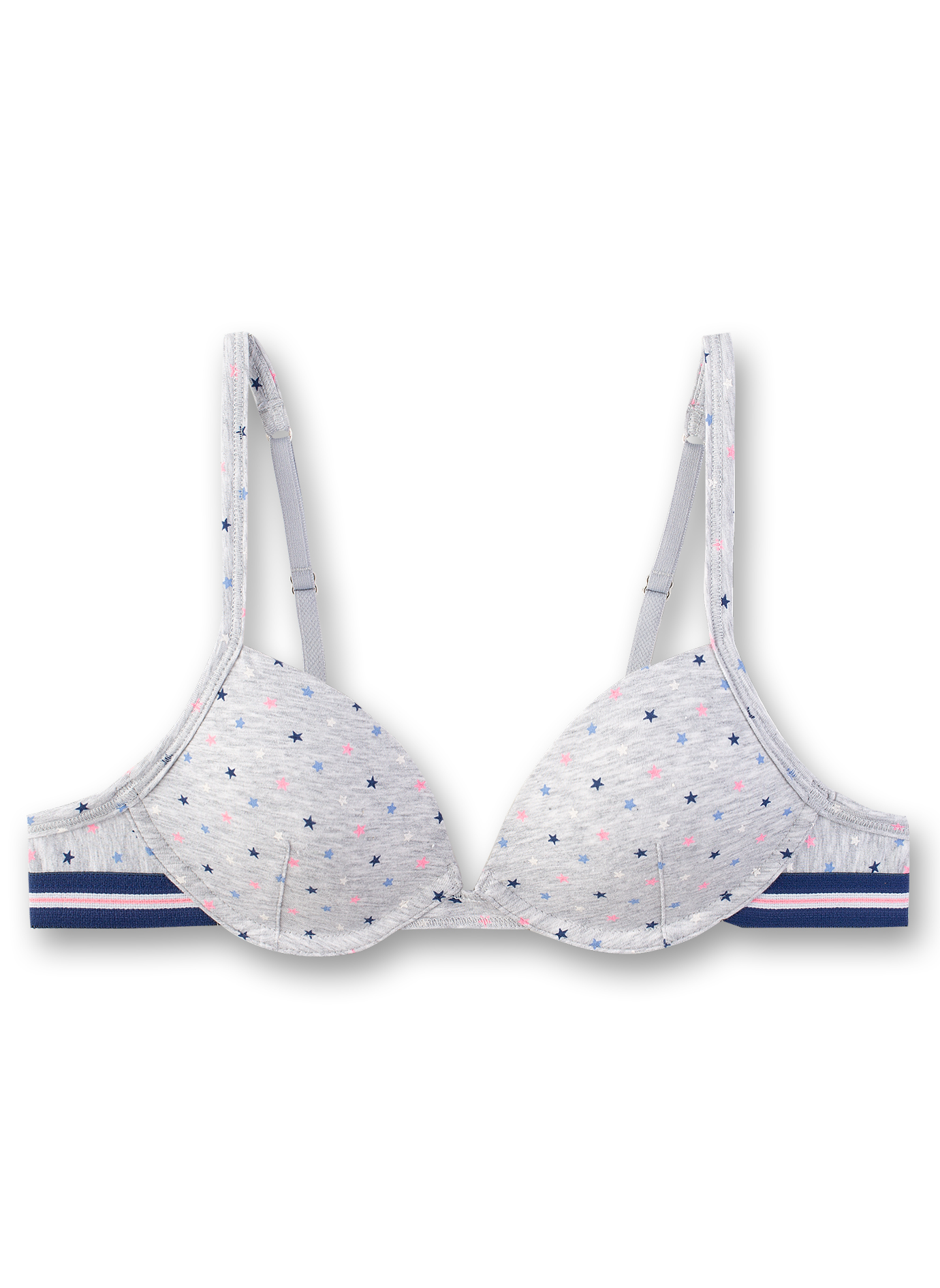 Бюстгальтер Back to School — впевнений початок нового дня, у якому акуратність форм поєднується з комфортом і відчуттям підтримки. Модель створена з продуманої суміші матеріалів, завдяки чому тканина м’яка, еластична, приємна до тіла, добре дихає протягом дня. Лаконічний дизайн з дрібним зірковим принтом виглядає сучасно й охайно, легко вписується у щоденний підлітковий гардероб. Регульовані бретелі дозволяють індивідуально налаштувати посадку, еластичний пояс забезпечує стабільну фіксацію без тиску. Акуратне виконання деталей, надійна форма, практичність підкреслюють високий рівень якості виробу.