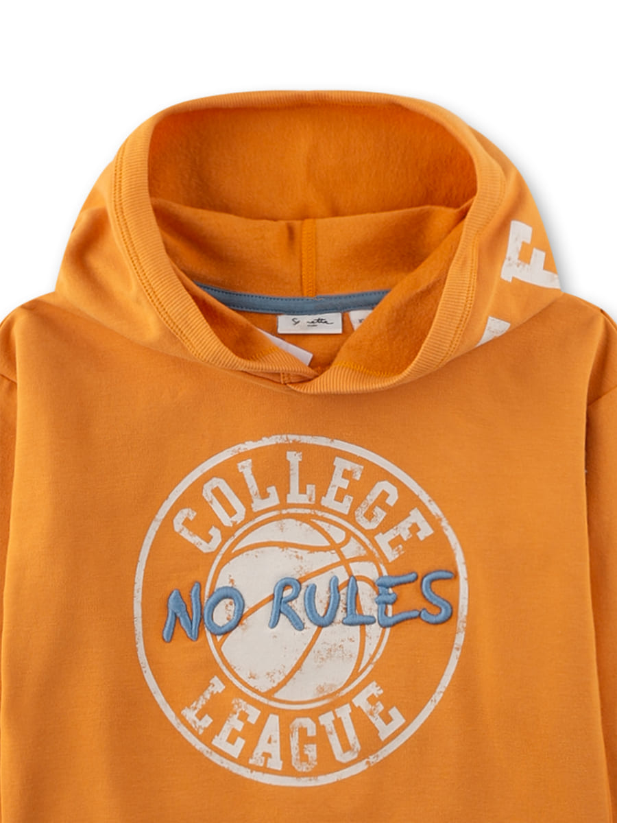 Світшот No Rules вирізняється яскравим дизайном і спортивним настроєм. М’яка бавовняна тканина з еластаном забезпечує комфорт і свободу рухів, а капюшон додає зручності у прохолодну погоду. Принт із написом College League – No Rules надає речі динамічного характеру, ідеально підходячи для активних хлопців. Практичний, стильний і приємний до тіла варіант на кожен день.