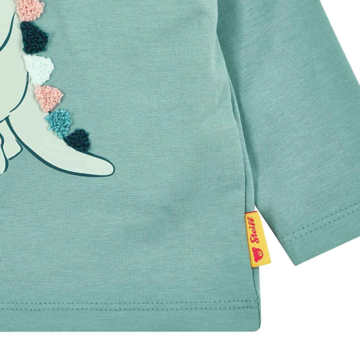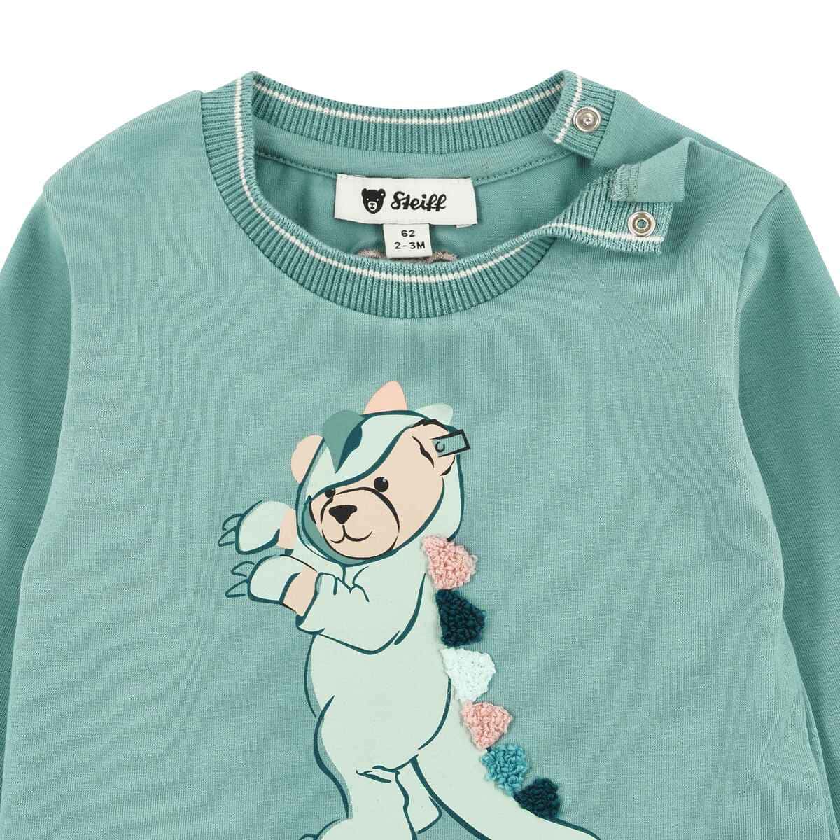 Футболка Dinosaur створює яскравий і грайливий образ для малюків. Натуральна бавовна у м’якому трикотажі дарує ніжність до шкіри та комфорт упродовж усього дня. Оригінальний принт із ведмедиком у образі динозавра доповнений об’ємними деталями на спинці, що додають виробу особливого характеру. Зручні кнопки на плечі полегшують перевдягання та забезпечують практичність у повсякденному використанні. Круглий виріз із делікатною обробкою підкреслює акуратний вигляд моделі. Фірмовий ведмедик завершує дизайн впізнаваним акцентом і створює відчуття затишку.