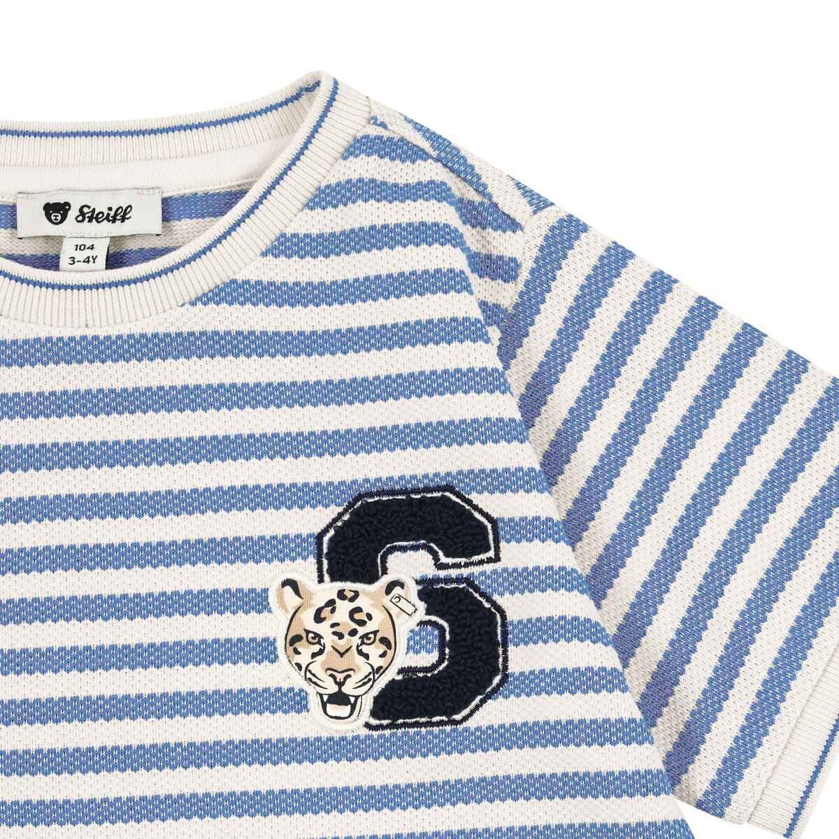 Футболка Leo Club вирізняється стильним дизайном і комфортом - ідеальне поєднання для активних днів. Натуральна бавовна дарує м’якість, легкість і приємні відчуття до шкіри, забезпечуючи оптимальну повітропроникність. Смугастий принт у насичених відтінках створює динамічний образ, аплікація з літерою додає виразного характеру та оригінальності. Круглий виріз із контрастною окантовкою акуратно тримає форму і забезпечує зручну посадку. Легка структура тканини дозволяє вільно рухатися, роблячи модель ідеальною для щоденних пригод. Фірмовий ведмедик завершує дизайн впізнаваним акцентом.
