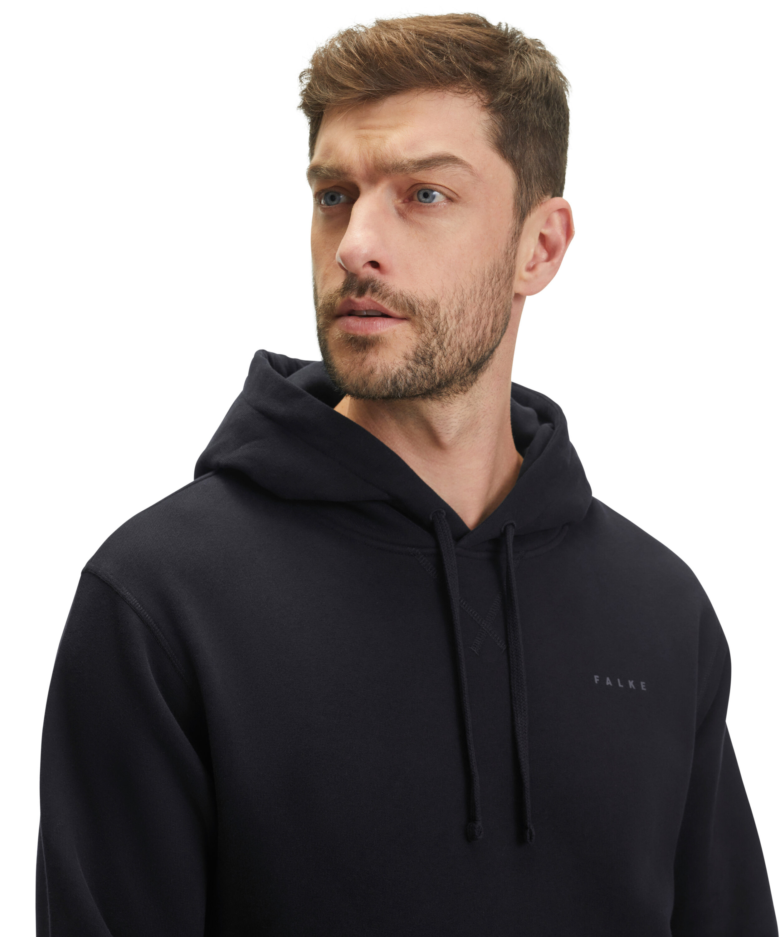 Спортивна кофта для чоловіків з капюшоном і практичними кишенями-кенгуру з високоякісної єгипетської бавовни від FALKE. У той час як зовнішня сторона щільного матеріалу гладка, внутрішня сторона має начіс, що робить тканину особливо м'якою та зручною для шкіри. Крій сучасний, повсякденний. Манжети та поділ кофти мають рубчик і зручно сидять без відчуття тісноти. Стильними деталями моделі є шнурок на капюшоні, трикутна строчка під отвором на шиї та логотип FALKE надрукований на грудях.
