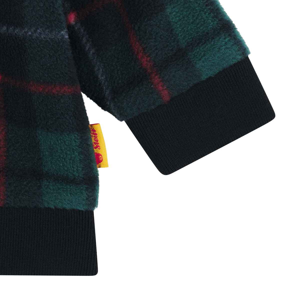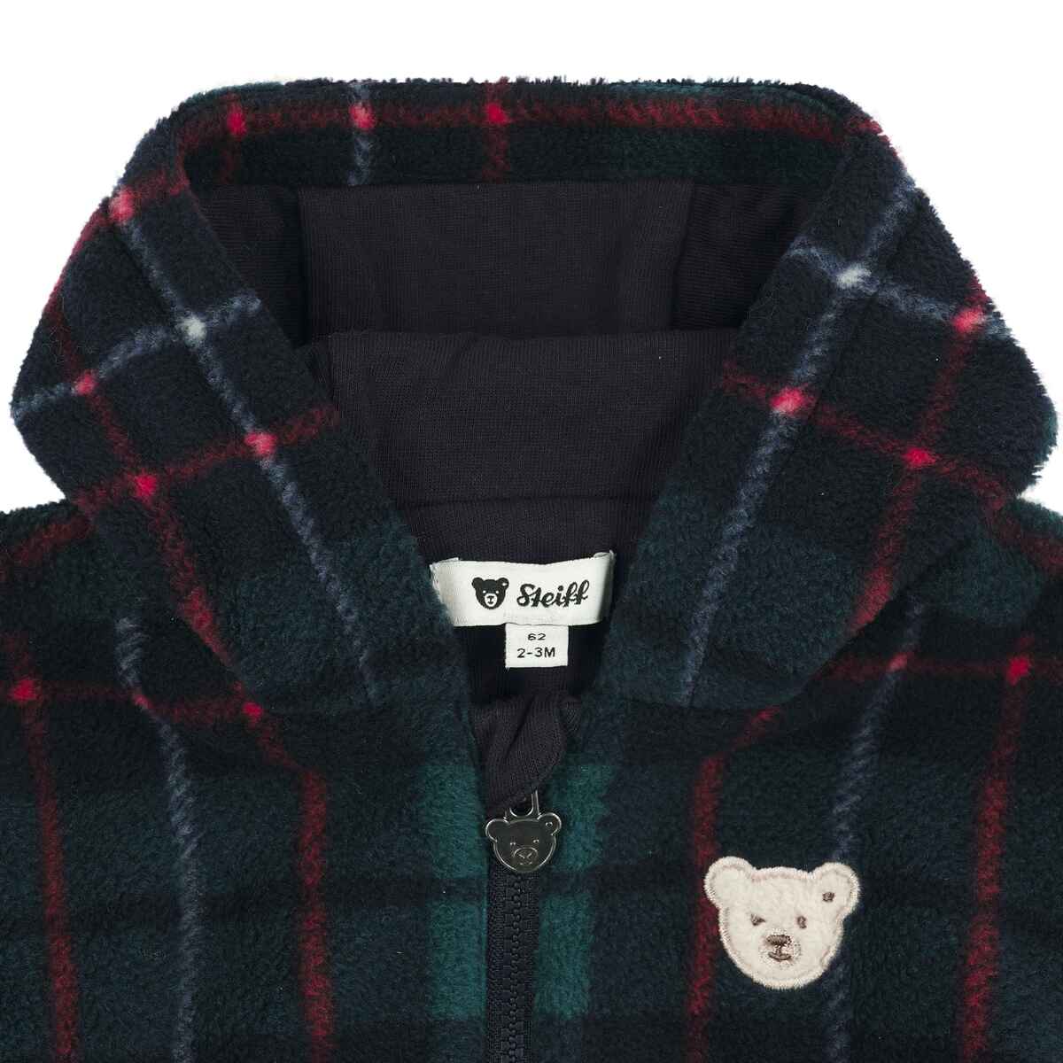 Тепла флісова куртка Celebration створена для затишку та комфорту під час прохолодних прогулянок. Темно-синя клітинка з червоними та зеленими акцентами додає образу класичного шарму. М’який фліс приємно гріє, капюшон забезпечує додатковий захист від вітру. Ребристі манжети дарують зручну посадку, блискавка спереду робить перевдягання легким і швидким. На грудях – фірмовий ведмедик Steiff, який супроводжуватиме малюка у кожній новій мандрівці.