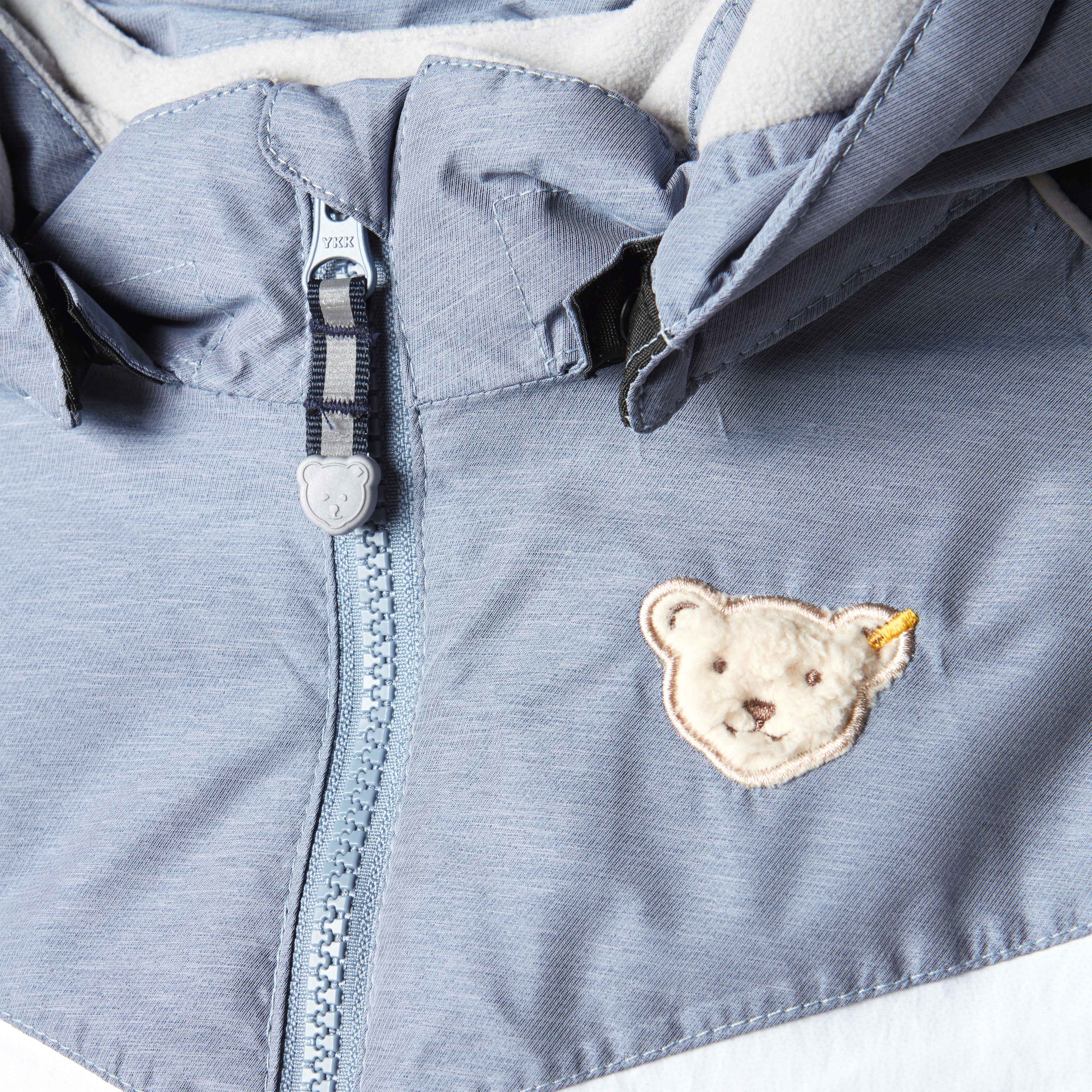 Практична і функціональна куртка Steiff Tec-Outerwear з капюшоном на флісовій підкладці створена для комфортних прогулянок і активностей на свіжому повітрі. На додаток до екологічно чистого водонепроникного просочення BIONIC-FINISH®ECO, що не містить фтору, ця куртка пропонує такі функції: 100% вітро- і водонепроникність, водонепроникність 8000 мм, зносостійкість 50 000, а також проклеєні шви. Захисний капюшон відстібається сам, якщо зачепиться. Куртка має еластичні манжети та блискавку із захистом підборіддя. Мотив пухнастого плюшевого ведмедика Steiff спереду та світловідбивний плюшевий ведмедик Steiff доповнюють дизайн виробу і роблять малюка помітним у темний час доби