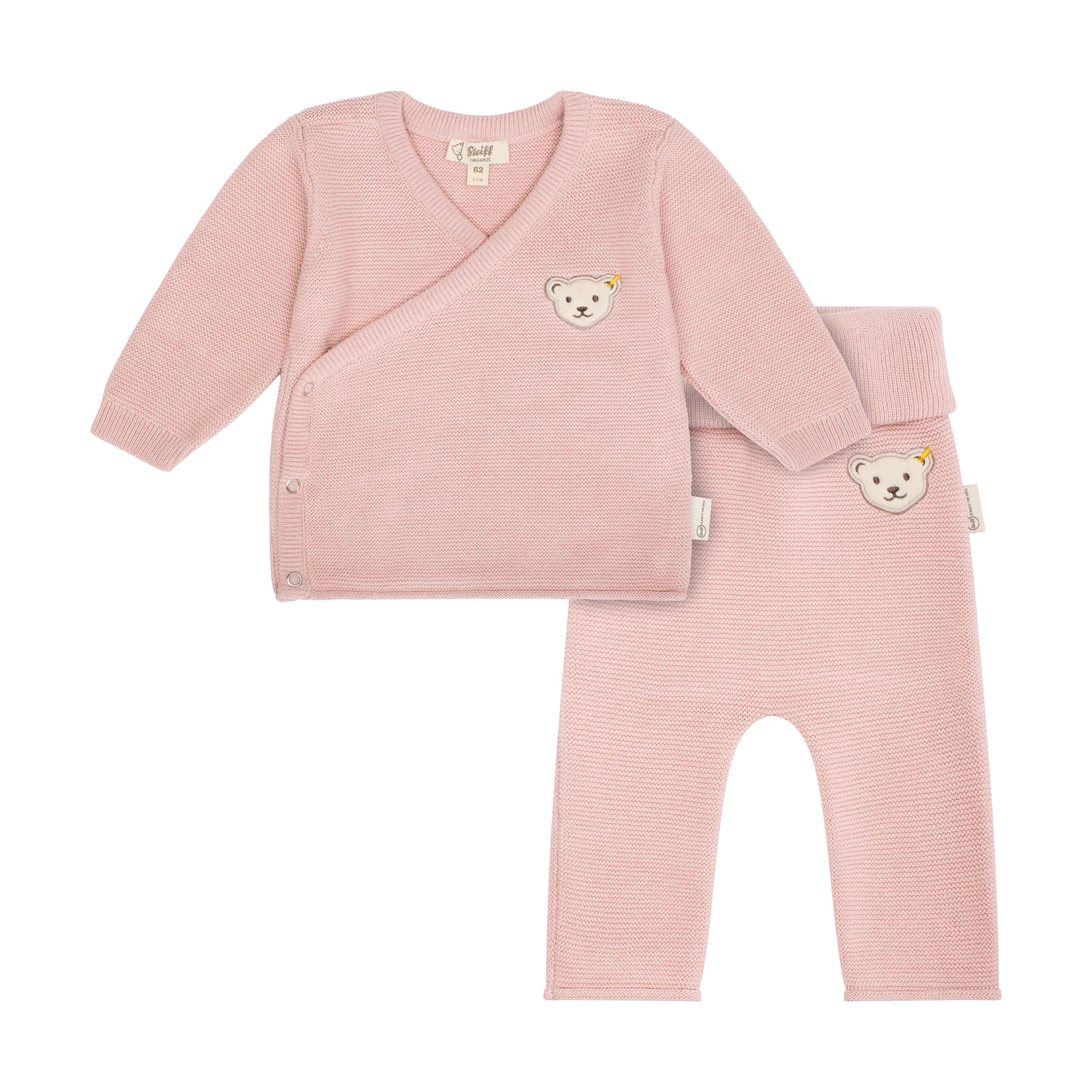 Комплект Basic з 2 речей - кофта і трикотажні штани з органічної бавовни - порадує малюка теплом і м'якістю на дотик. Кофта застібається збоку на кнопки. Зручні штани ідеально сідають по фігурі завдяки поясу на резинці. Напрочуд м'який бавовняний трикотаж забезпечує малюкам свободу рухів під час пізнання світу. Натуральний комплект – відмінний вибір як для дому, так і для прогулянок.