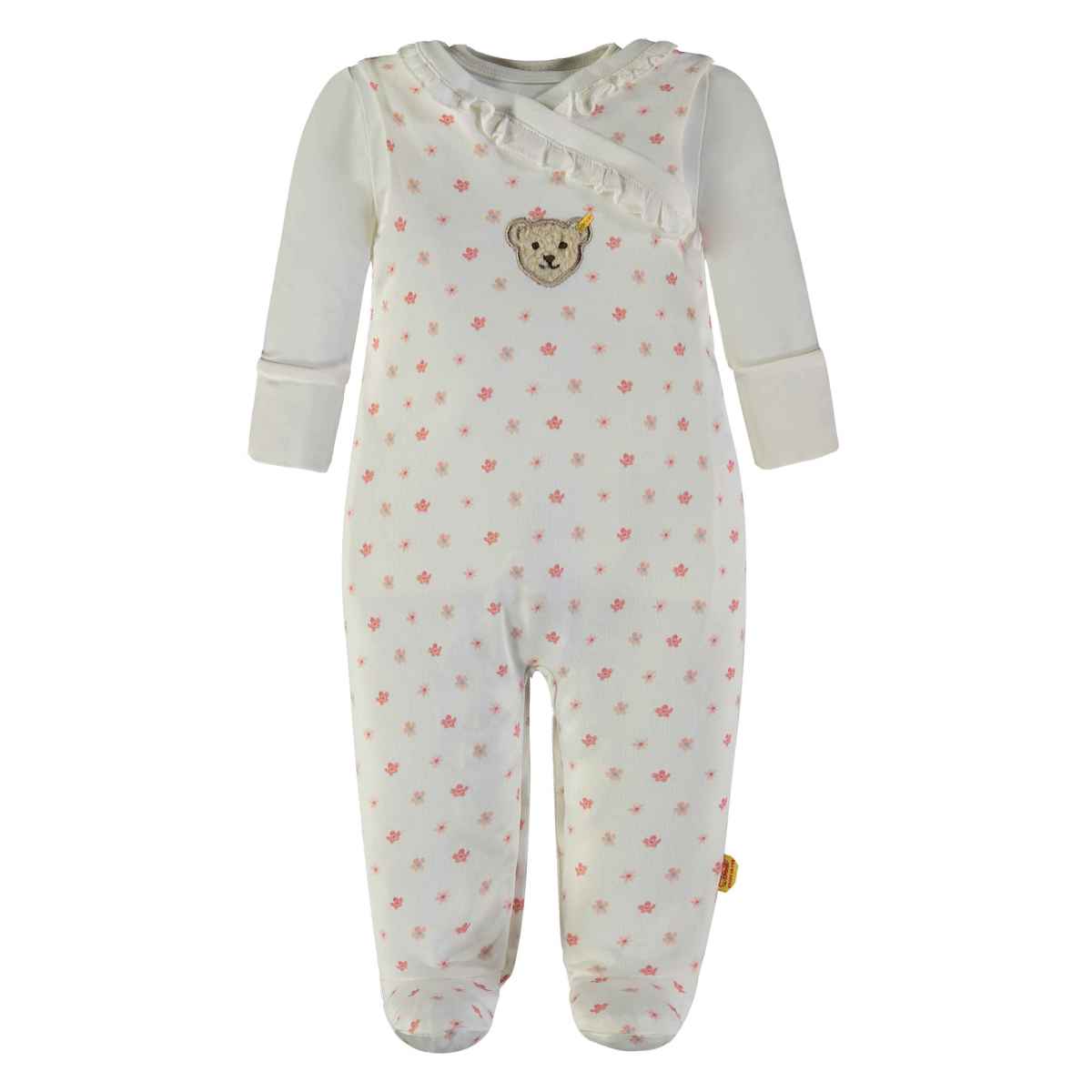 Повзунки та футболка Flower Garden - чарівний комплект, який допоможе вам створити повноцінний і комфортний образ для вашого малятка. Виготовлений з легкого, м'якого бавовняного трикотажу для максимального комфорту. Сертифікований матеріал повністю безпечний для дитини і не викликає алергічних реакцій. Тканина м'яка та повітропроникна. Напівкомбінезон доповнений прикрасою у вигляді оборок. Пухнастий ведмедик Steiff Teddy підкреслює унікальність виробу і відмінно вписується в дизайн